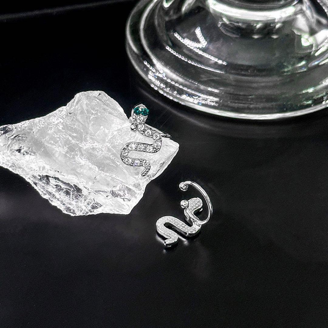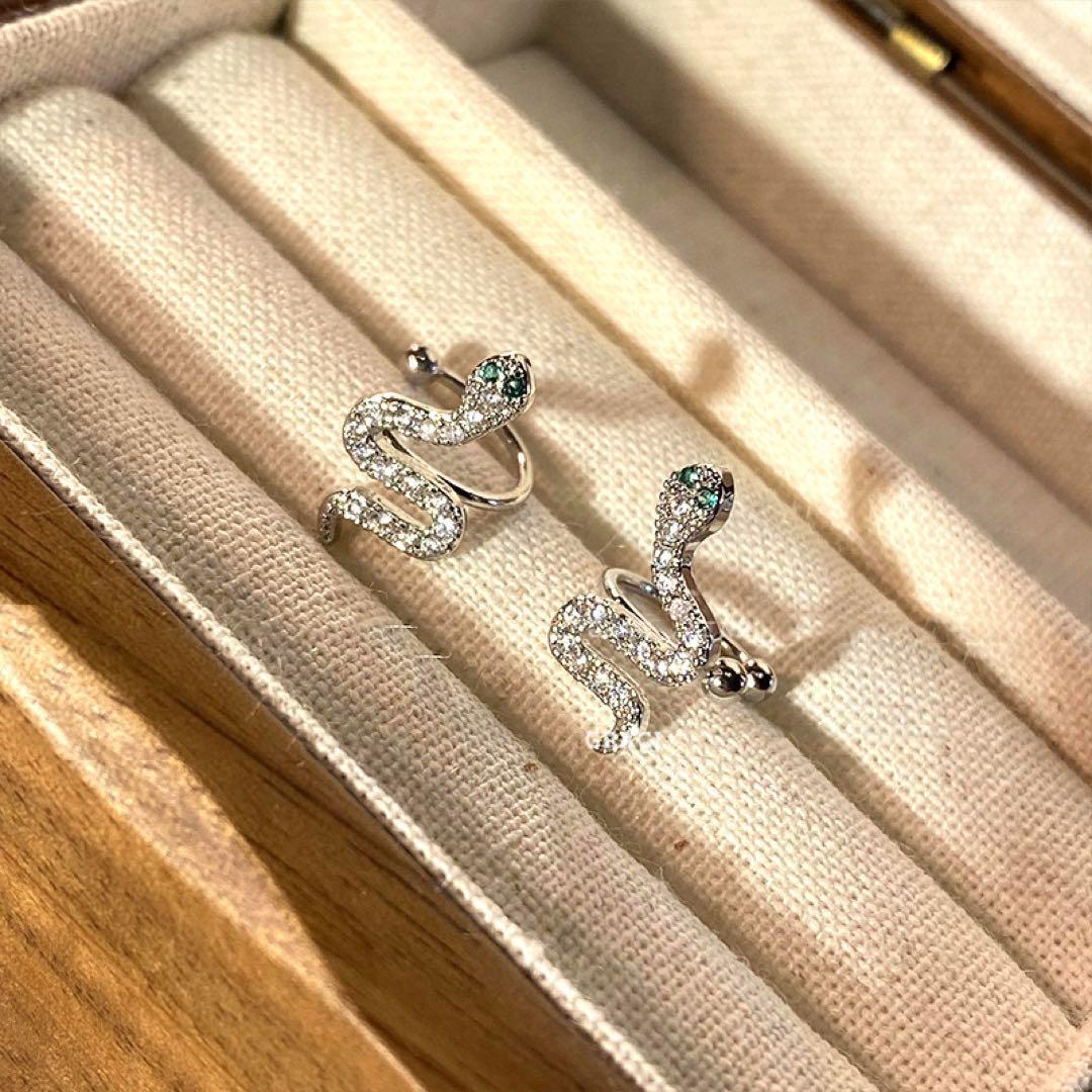 可愛いヘビのイヤーカフ,存在感があり,ピアスと重ね付けもおしゃれです。