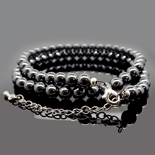 ヘマタイトネックレス また、どんな服装にも合わせやすい、シンプルな美しさです。