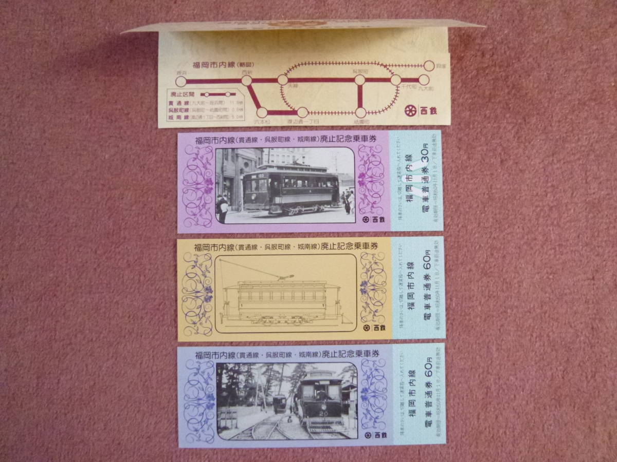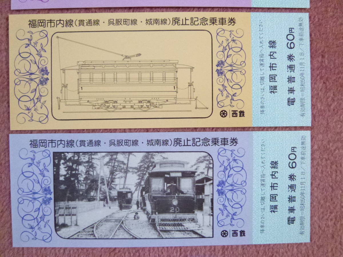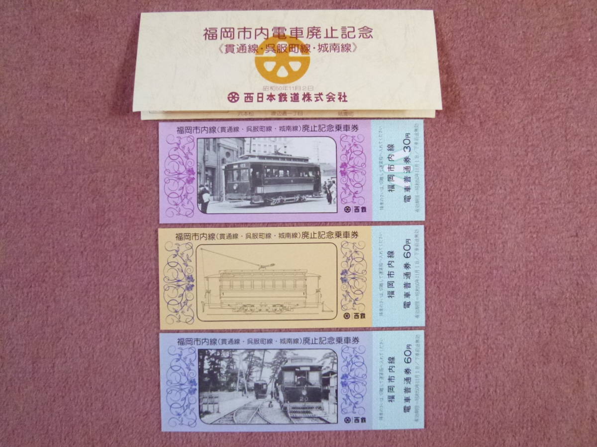 西鉄福岡市内線(貫通線/呉服町線/城南線)電車廃止記念乗車券3枚1組(廃線/西日本鉄道/路面電車/チンチン電車/地下鉄開通)