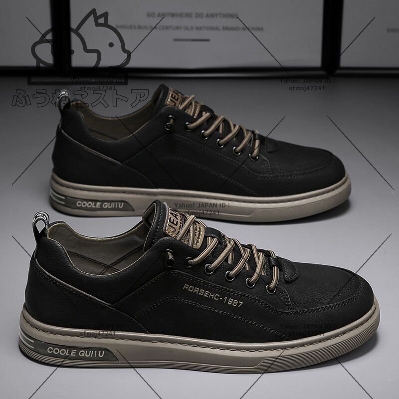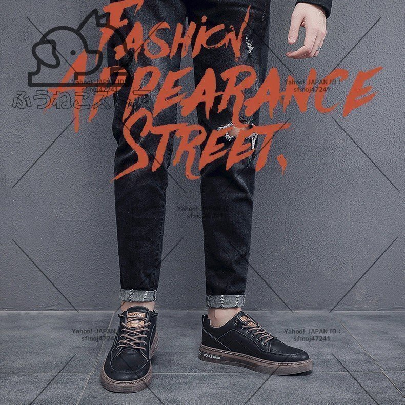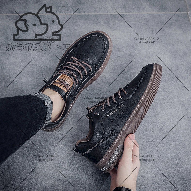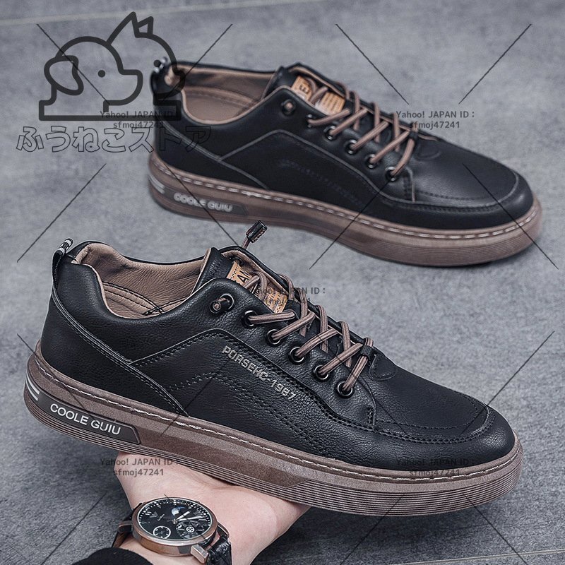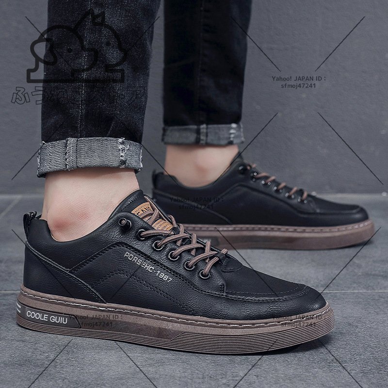 デッキシューズ スケーボーシューズ スリッポン メンズシューズ ウォーキングシューズ 革靴 スポーツ シンプル ブラック25cm