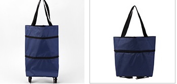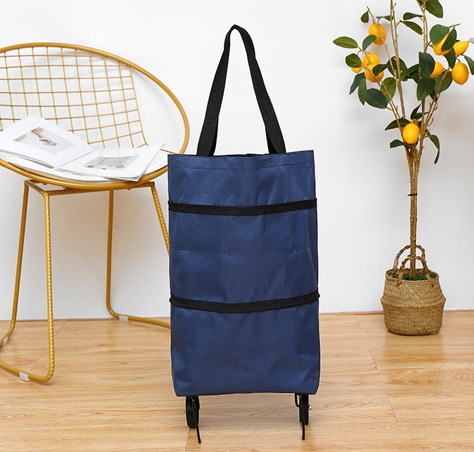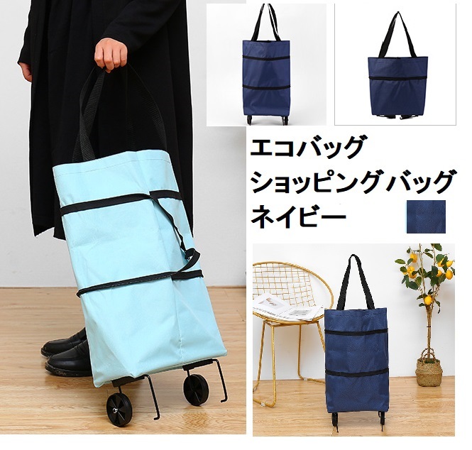 エコバッグ 折りたたみショッピングキャリー 2輪キャスター付き  ネイビー 軽量 大容量