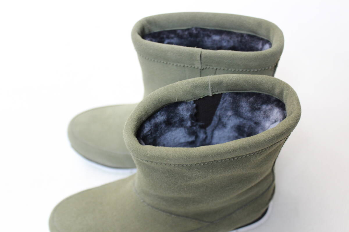 エコファーで中まであったかショートブーツ。中敷きにもライニングにもエコファーのふわふわ間満載で、暖かく履いていただける寒さ対策に万全のアイテム。筒の内側にhがスリット入りのゴムが入っていて、足首の窮屈感を軽減し、ソールも軽量のモールドソールで返りよくストレスフリーな履き心地に、