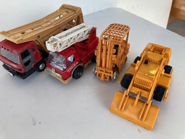 当時物 ミニカー 働くクルマ 4台/ヨネザワ ダイヤペット 野村トーイ TONKA SHINSEI POWER☆中古です。いろいろ壊れています。フォークリフトは前の乗せるとこありません。タイヤもありません。ほかの3台も色あせ、ヤケ、汚れあります。発送は佐川急便です。中国・四国・関西地区の方は料金750円、九州・北陸・東海・信越・関東地区の方は料金850円、 東北地区の方は料金1550円、北海道の方は料金1050円です。沖縄の方は料金1000円です。