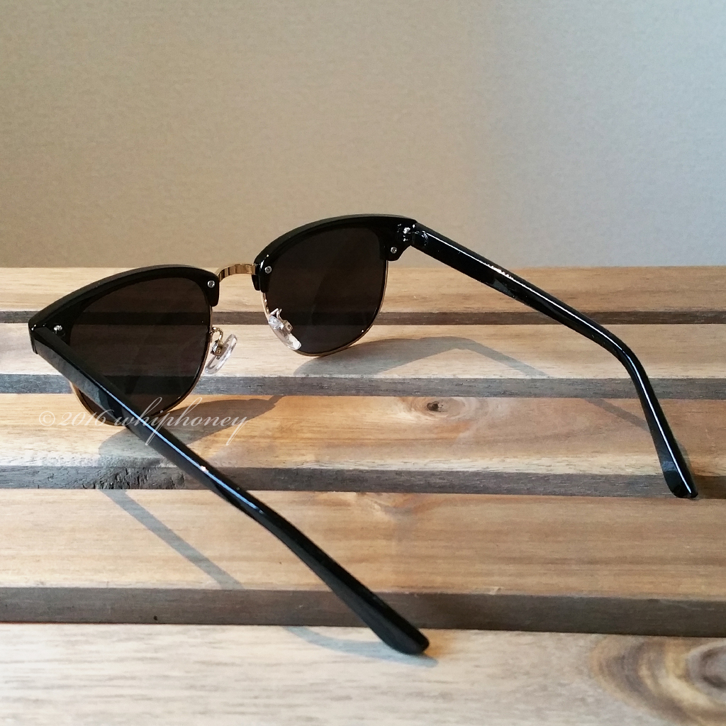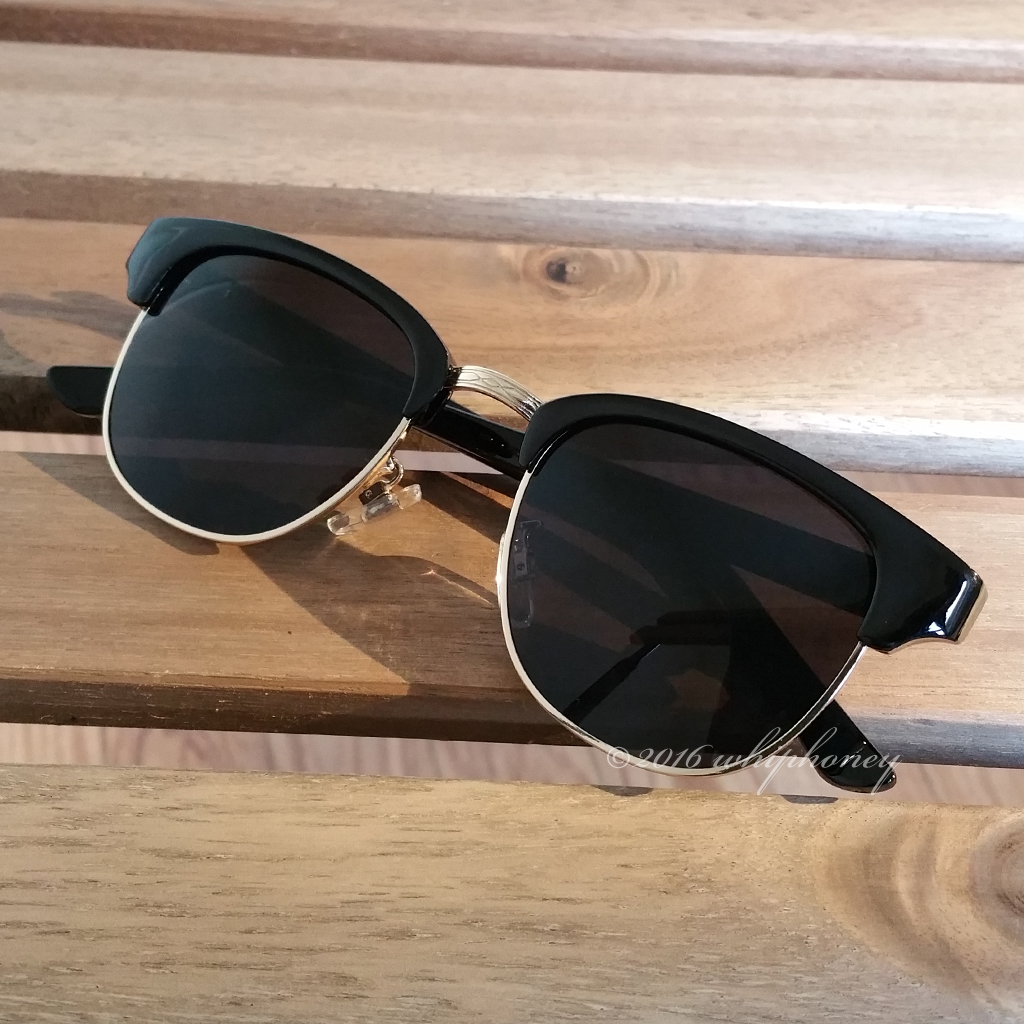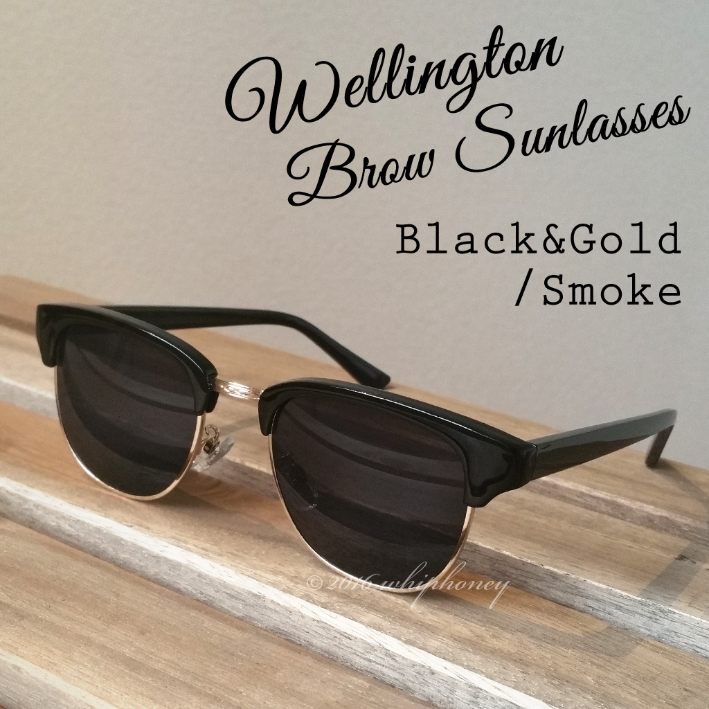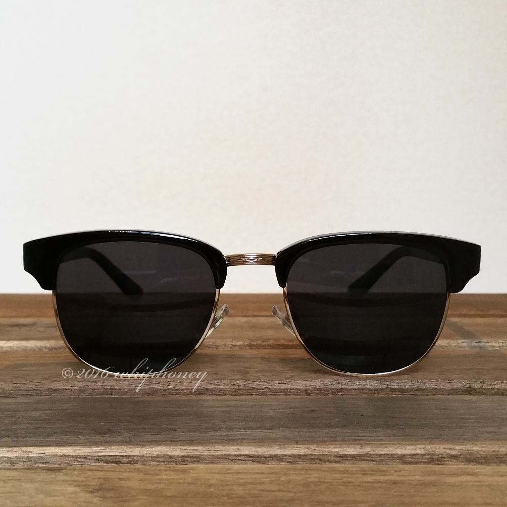 クラシカルで存在感たっぷり ブロウ ハーフリムUVサングラス ブラック ゴールド