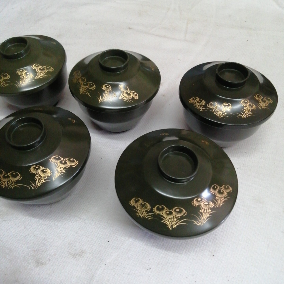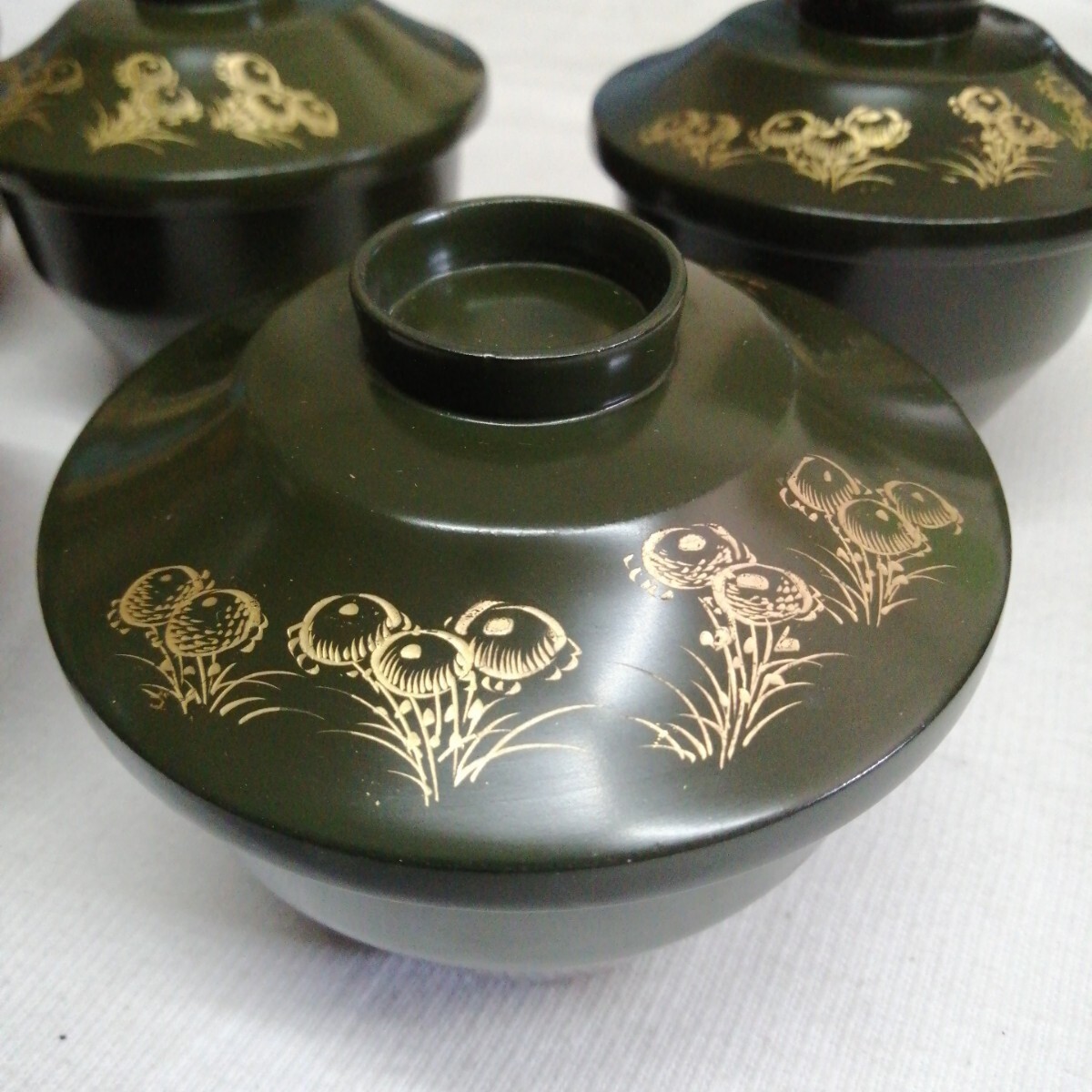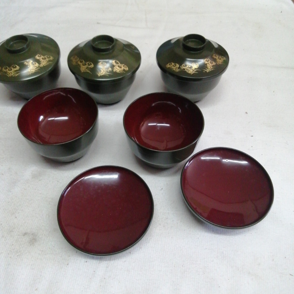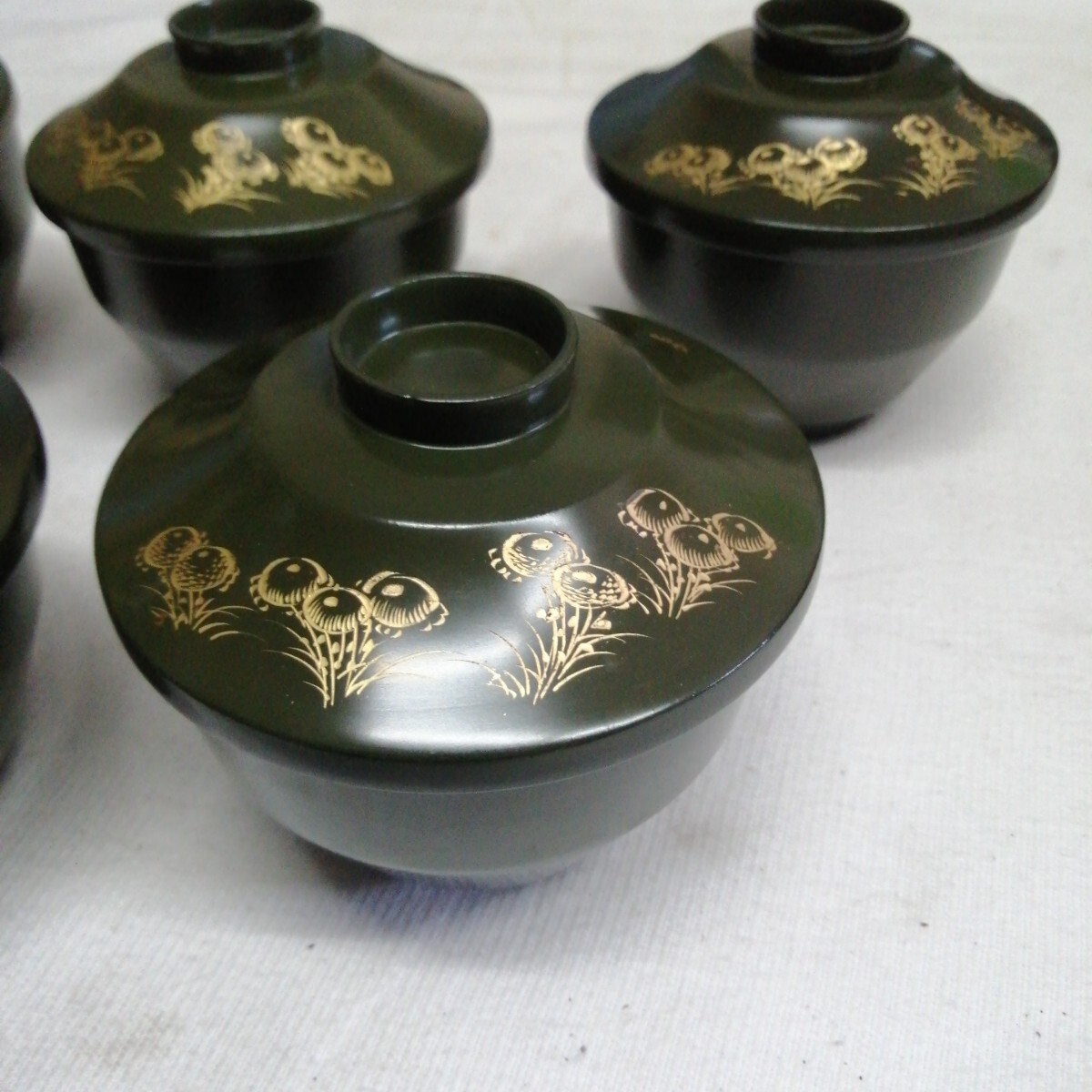 計20客揃 大正9年 小口吸物椀 木 塗 蝶々 花 華 緑 蓋付き 木箱入 古物 骨董 器 汁椀