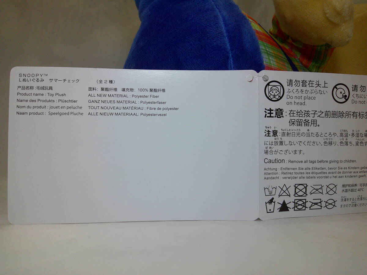 ◆SNOOP スヌーピー L ぬいぐるみ サマーチェック チャーリーブラウン
