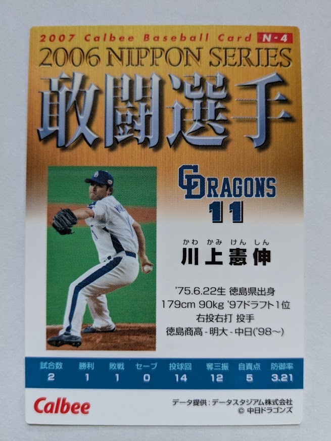 2007 カルビープロ野球チップス N-4 日本シリーズカード 敢闘選手 川上憲伸 中日