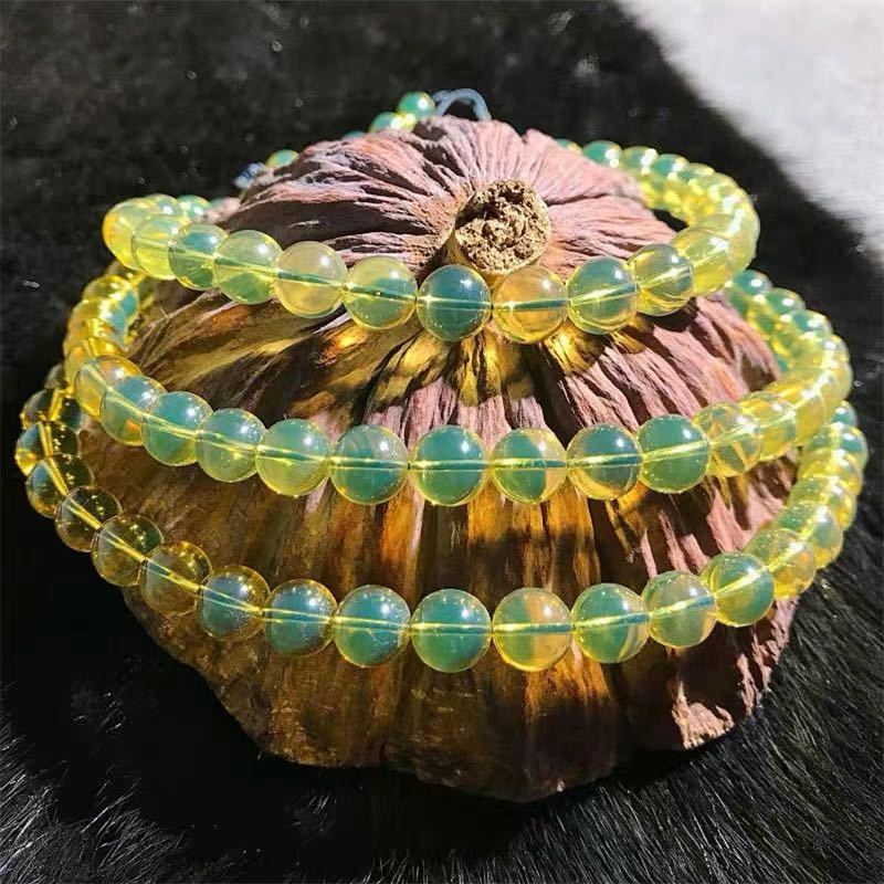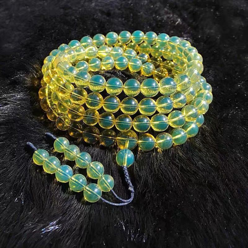 数珠 ブレスレット アンバー ブルー琥珀 美術品 小物ファッション 男女兼用 8mm