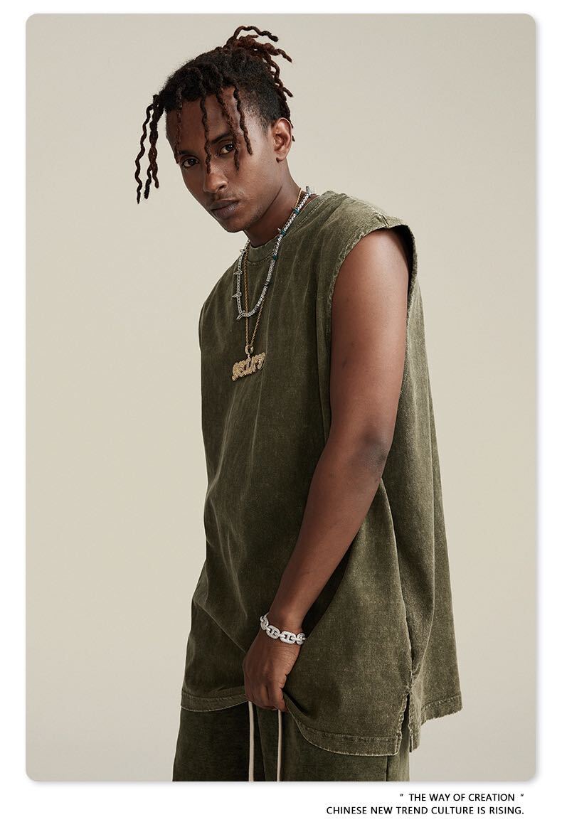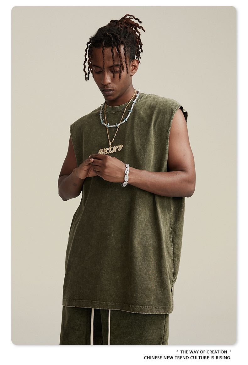 タンクトップ ノースリーブ シャツ ストリートファッション ヘビーウェイト カットオフ Tシャツ メンズ レディース