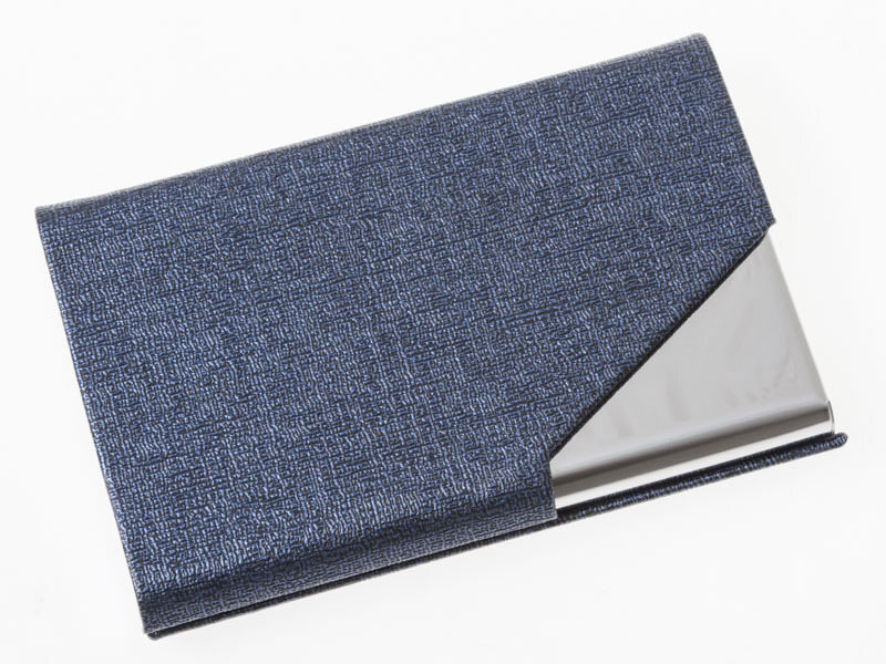 上質感模様 PUレザー+ステンレス合金製 マグネット内蔵名刺入れ ケース カード収納整理 用 #ブルー ZA-37222