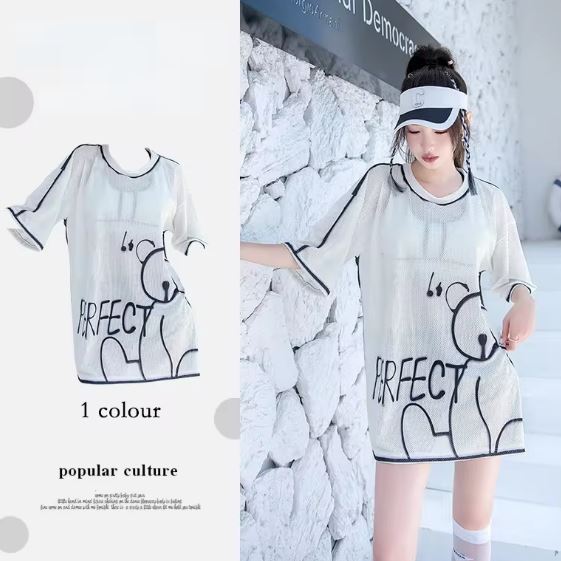 【XLサイズ WHITE 3点セット】七分袖の女性用水着,ボディ,レタリングプリント,ベリー,スリム,3ピース,学生用