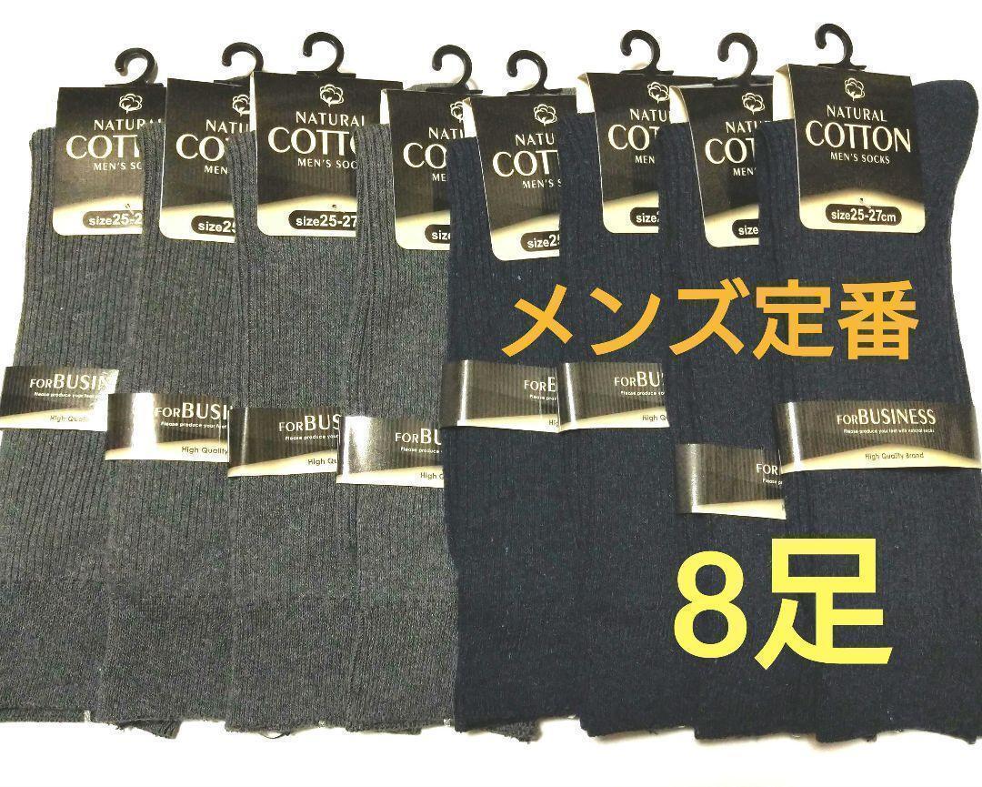 定番!!紳士リブソックス全8足! 紺、グレー無地メンズ靴下!