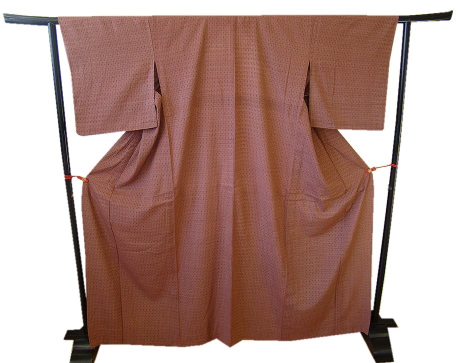 | 商品説明 | こちらのお品は単衣ですので5月、6月、9月にお召頂ければと思います。 着物には、大きく分けて「袷(あわせ)の着物」と「単衣(ひとえ)の着物」と「夏着物」があります。 反物(表地)を着物に仕立てるときに、裏地類をつけるものを袷の着物、 つけないものを単衣の着物と呼び、胴裏や八掛といった裏地がつかない一枚ものの着物です。 また裏地がないため、座る時などにヒップのラインが目立たないよう、 居敷当て(いしきあて)の生地をつけることもあります。 居敷当ては付いておりません。 驚く程に軽く大変に柔らかでしなやかな風合いが極上の着心地を誘う 単衣仕立ての味わい豊かな無形文化財の本場結城紬です。 渋い紅檜皮色地に墨色の格子の織柄、 証紙・残布は残念ながらついておりませんが手触りや織等から 無形文化材の本場結城紬と思われます。 また、裄が長めとなっております。 |
