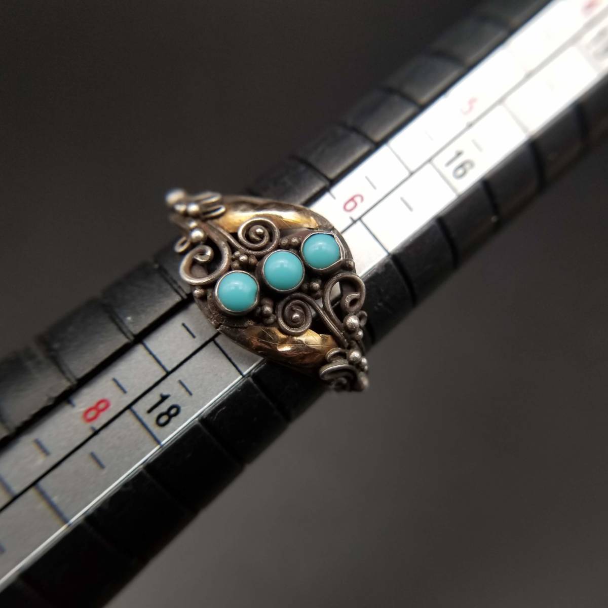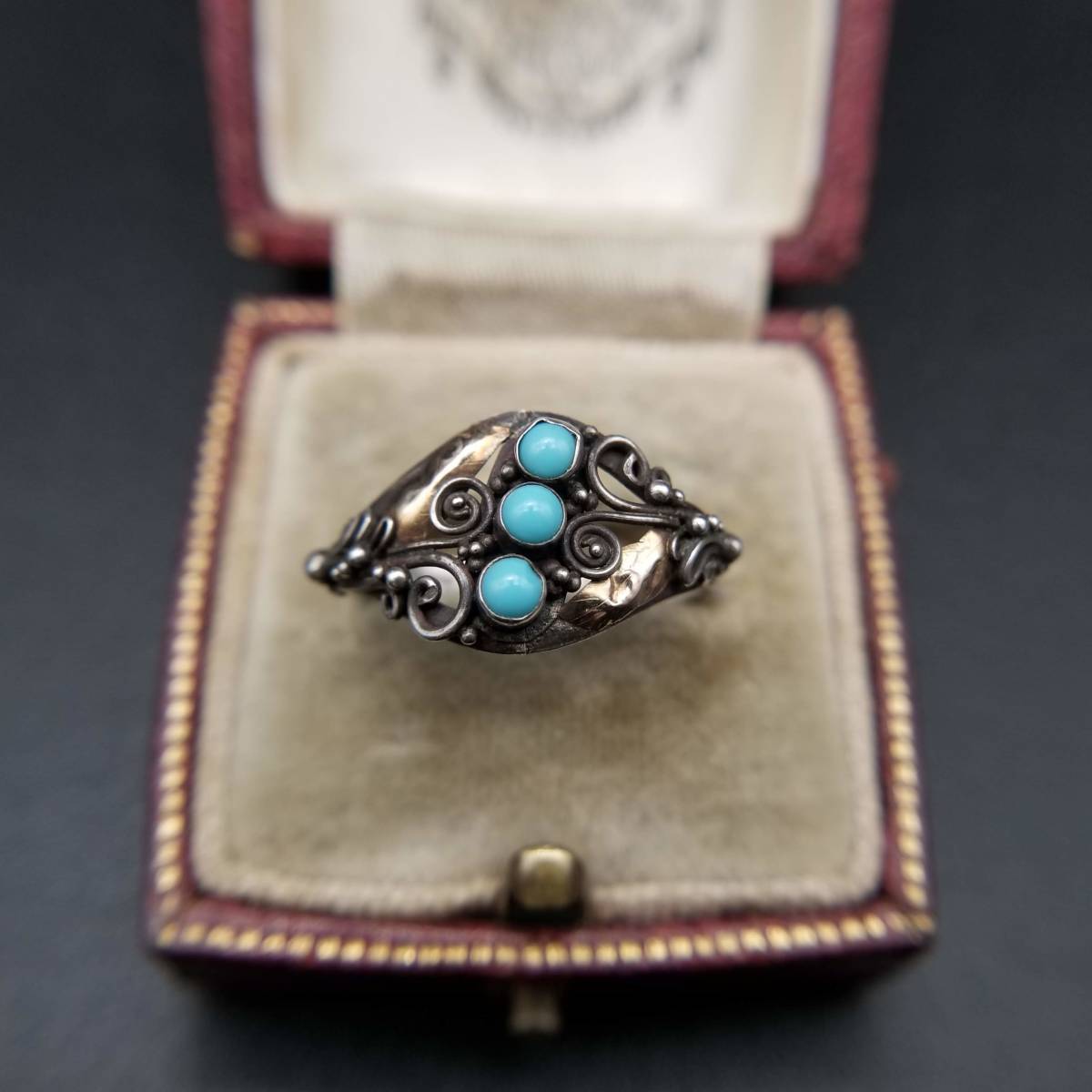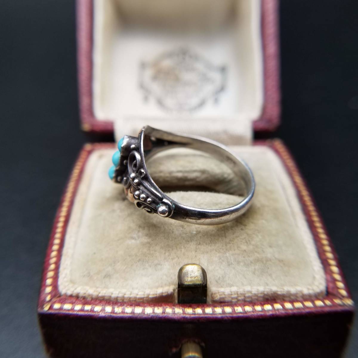 米国 アンティーク ヴィクトリアン K22 ローズゴールド 925 シルバー ターコイズ リング 金 銀 指輪 フローラル 植物彫金