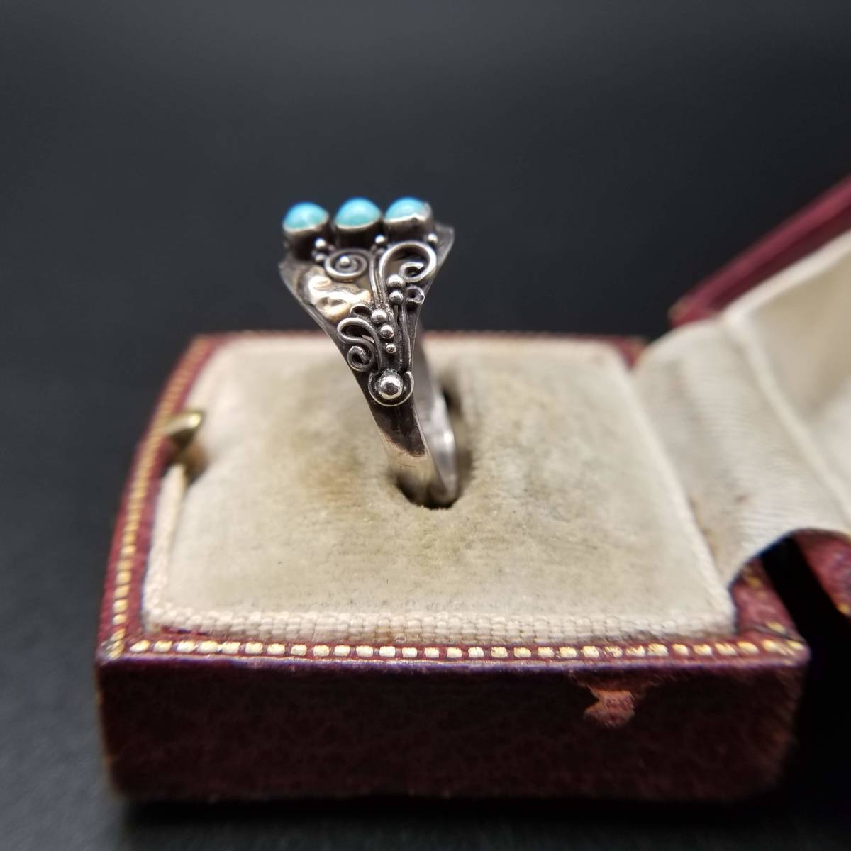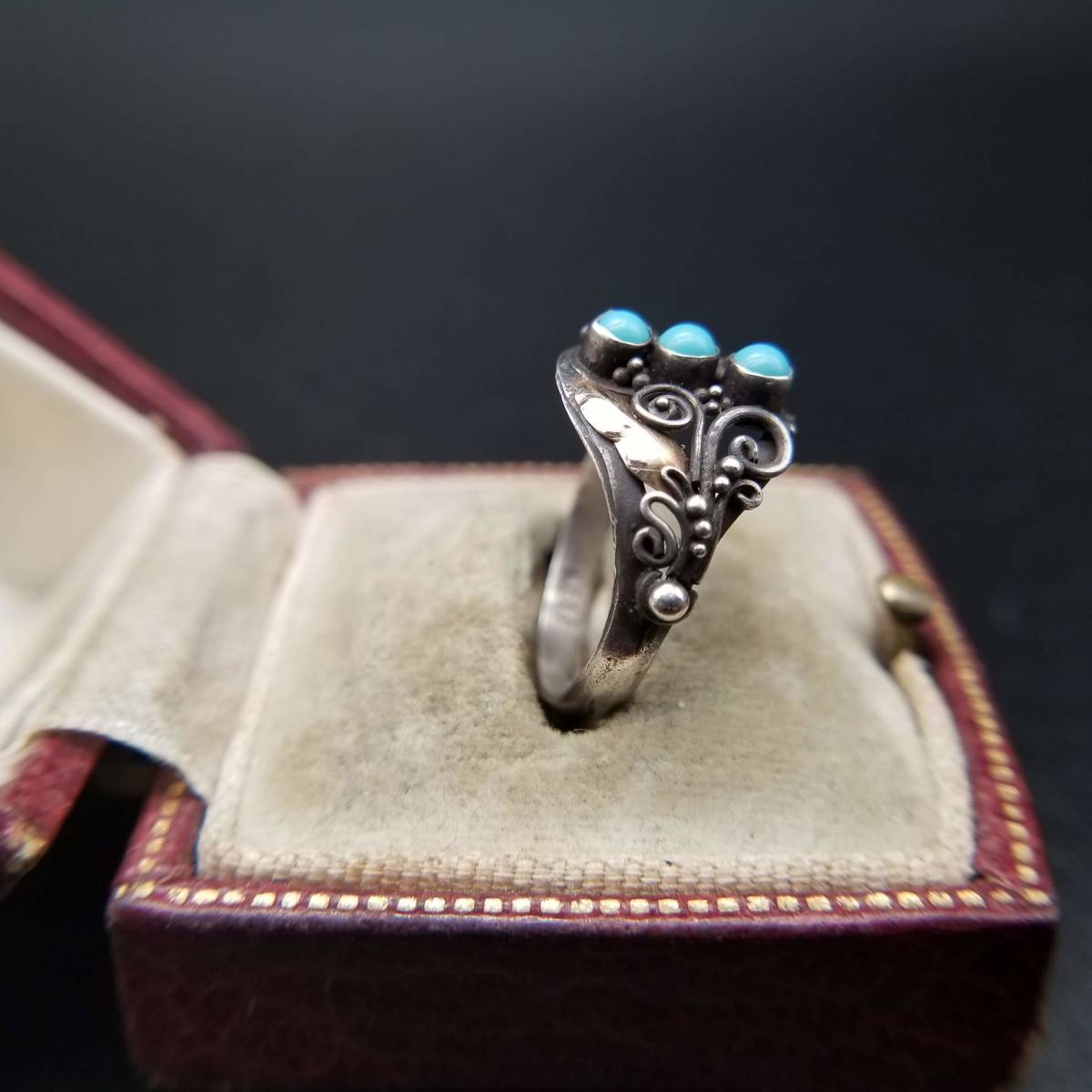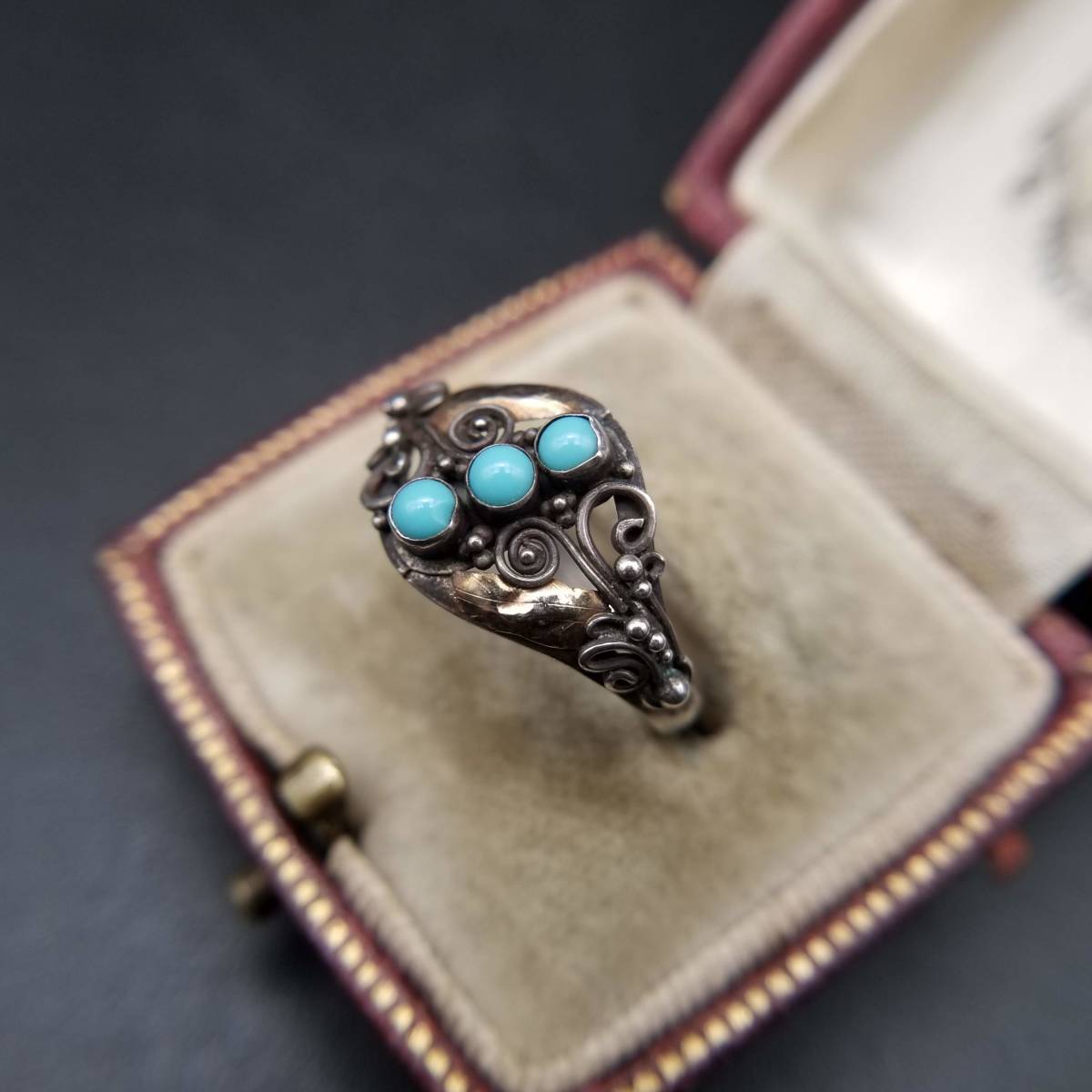米国 アンティーク ヴィクトリアン K22 ローズゴールド 925 シルバー ターコイズ リング 金 銀 指輪 フローラル 植物彫金