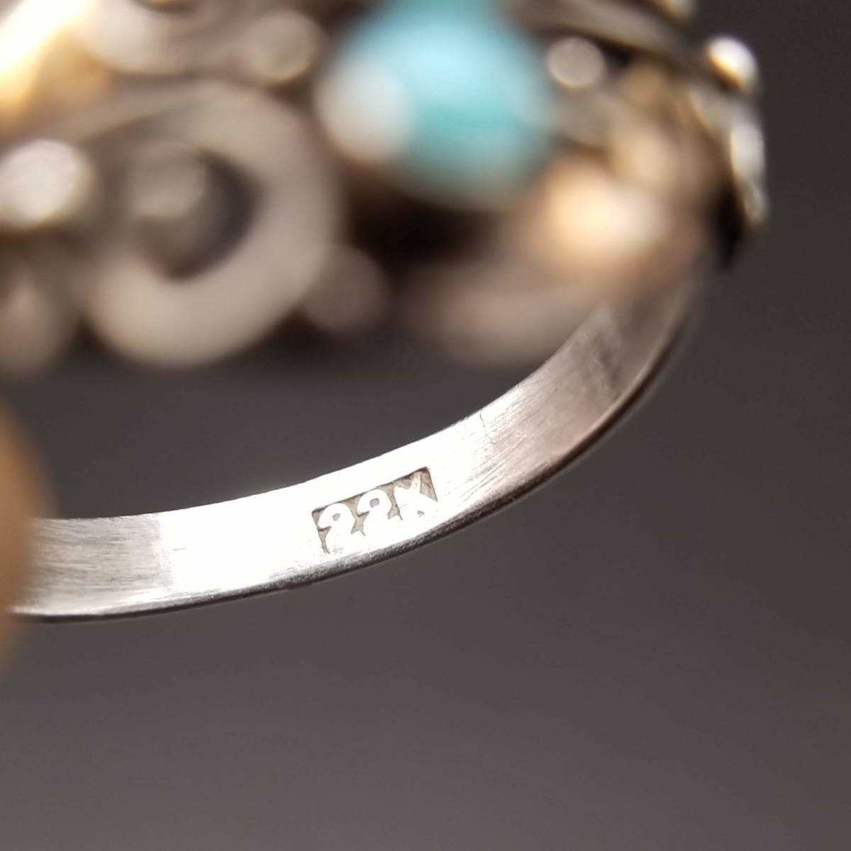 米国 アンティーク ヴィクトリアン K22 ローズゴールド 925 シルバー ターコイズ リング 金 銀 指輪 フローラル 植物彫金