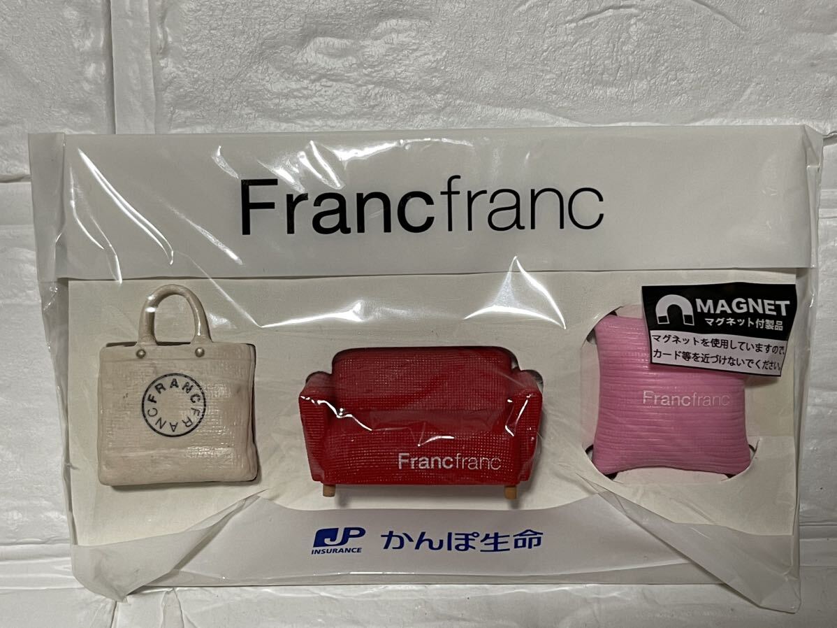 こちらは、非売品☆フランフラン Francfranc かんぽ生命 マグネット3個 キッチン雑貨 インテリア雑貨 トートバッグ ソファ クッションの形のマグネット☆ございます。