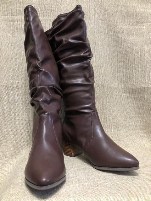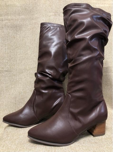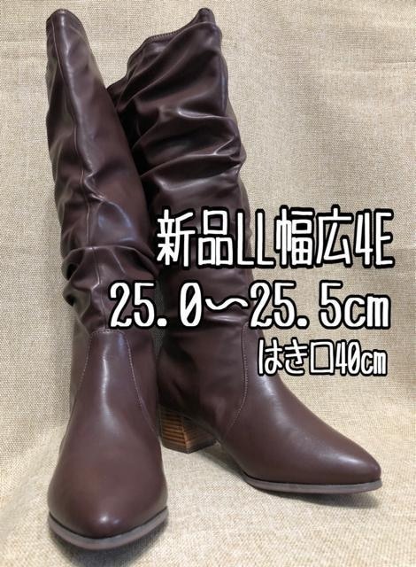 新品☆LL25~25.5cm幅広4E茶系♪くしゅくしゅデザインおしゃれロングブーツ☆r461
