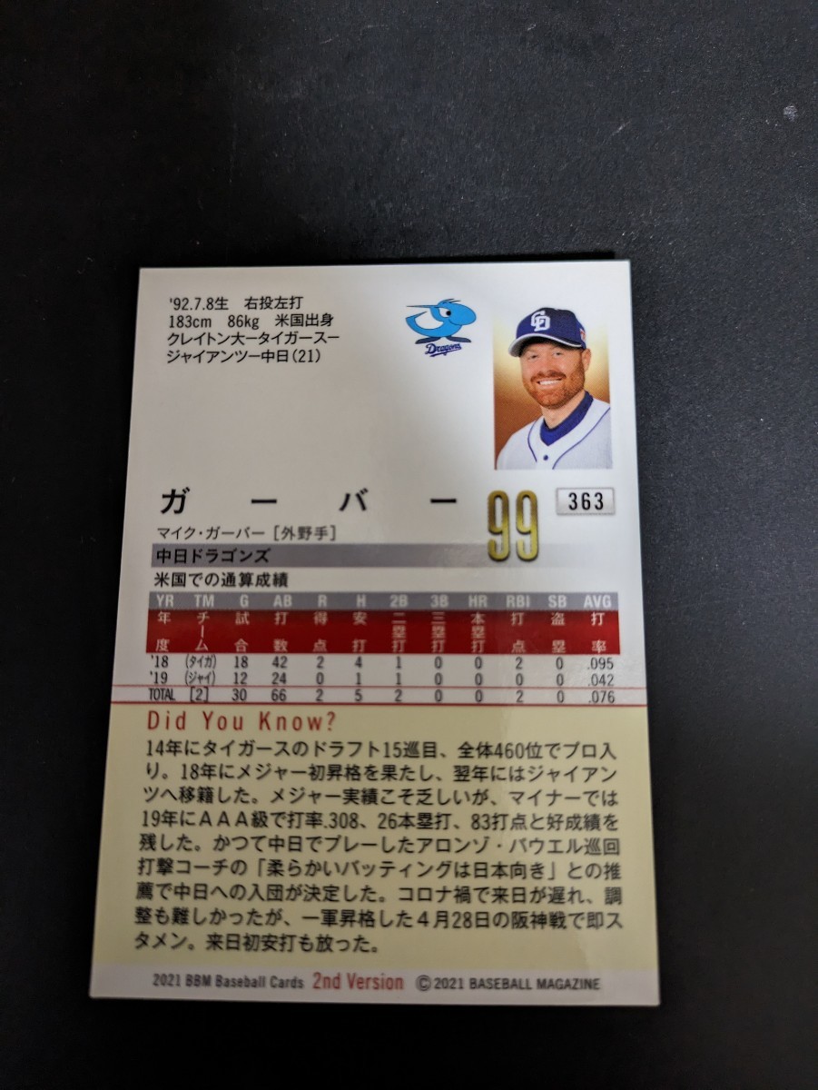 即決★BBM2021 中日ドラゴンズ ガーバー