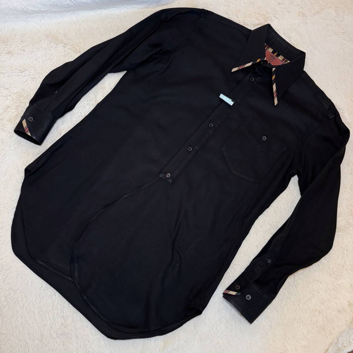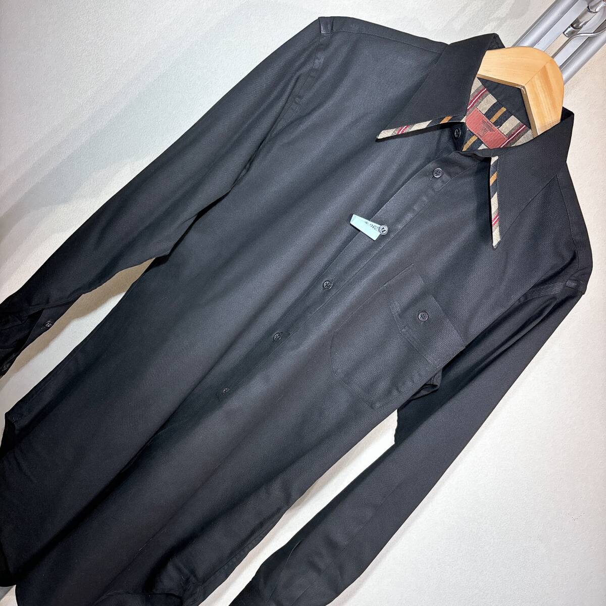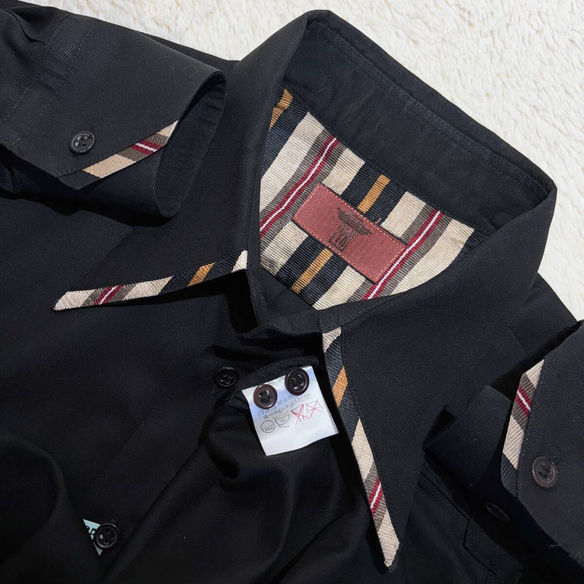 | W864美品!■YKヨシユキコニシ★黒&レジメンストライプ★デザインシャツ■ | ||||||||||||||||||||