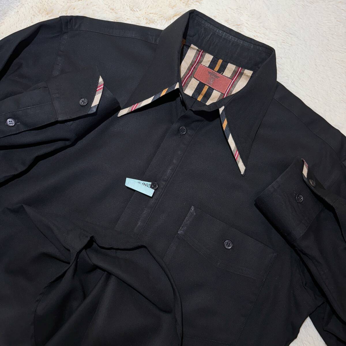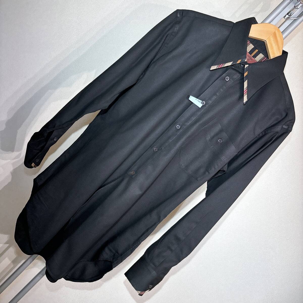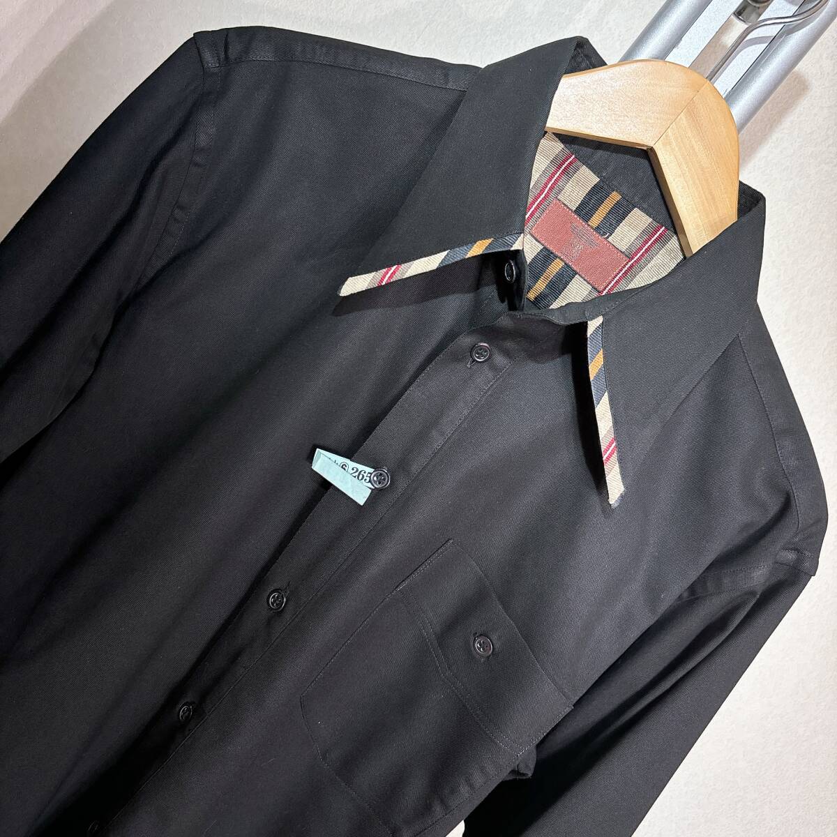 | W864美品!■YKヨシユキコニシ★黒&レジメンストライプ★デザインシャツ■ | ||||||||||||||||||||