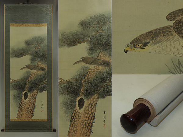 | №2310073【模写】佐竹藍川【猛禽図】◆絹本◆合箱◆掛軸 | |
