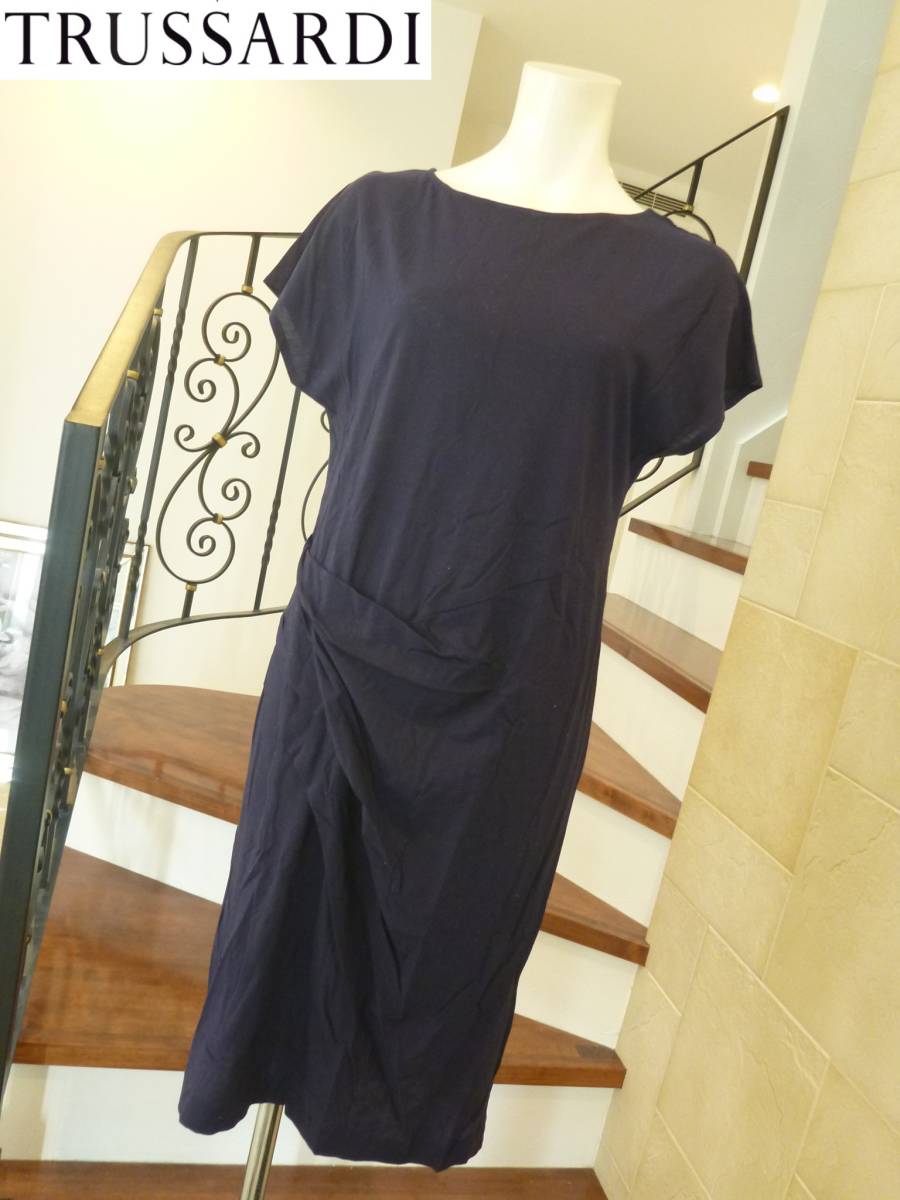 美品 TRUSSARDI トラサルディー★紺 ネイビー 半袖 ワンピース 38 M相当