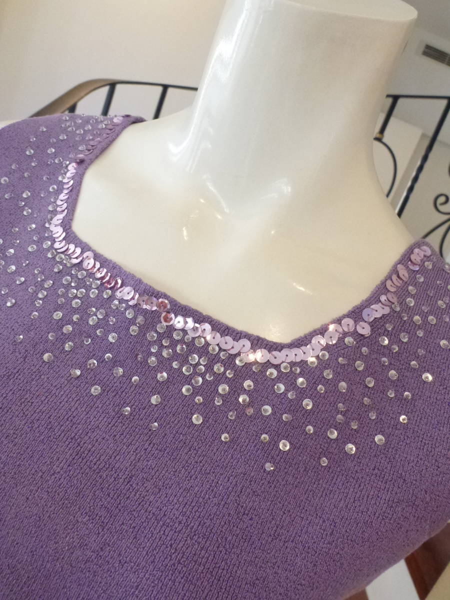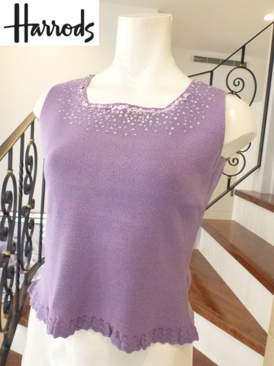 超美品 Harrods(ハロッズ)★日本製 ラベンダー スパンコール ノースリーブセーター M相当