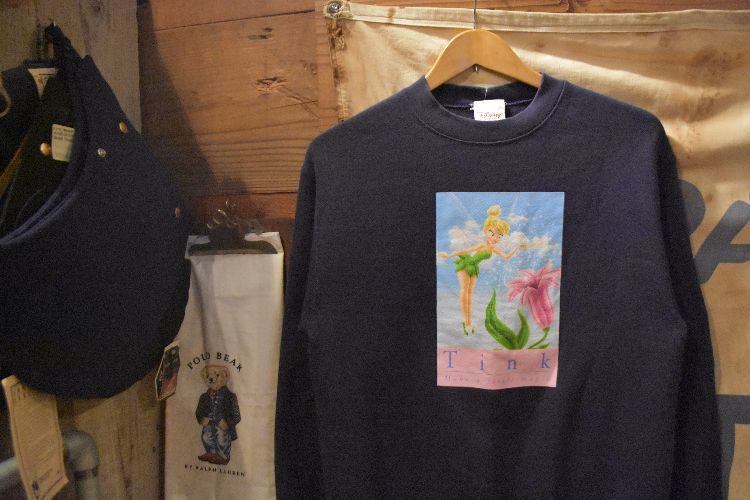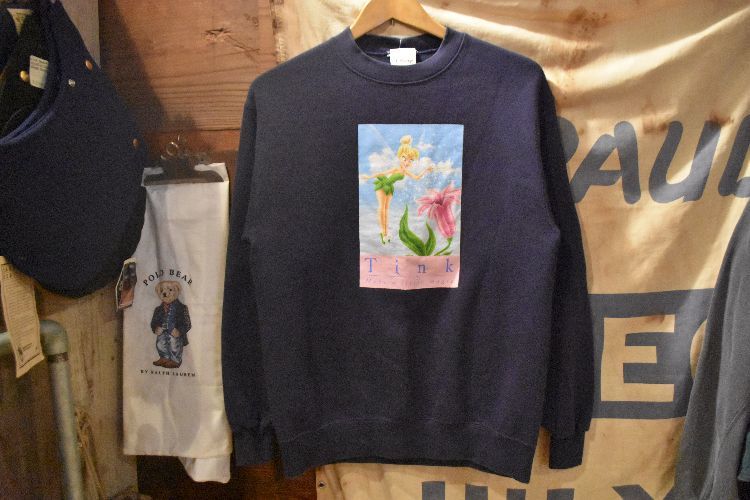 アメリカ製、DISNEY STOREのティンカーベルプリントスウェットになります。