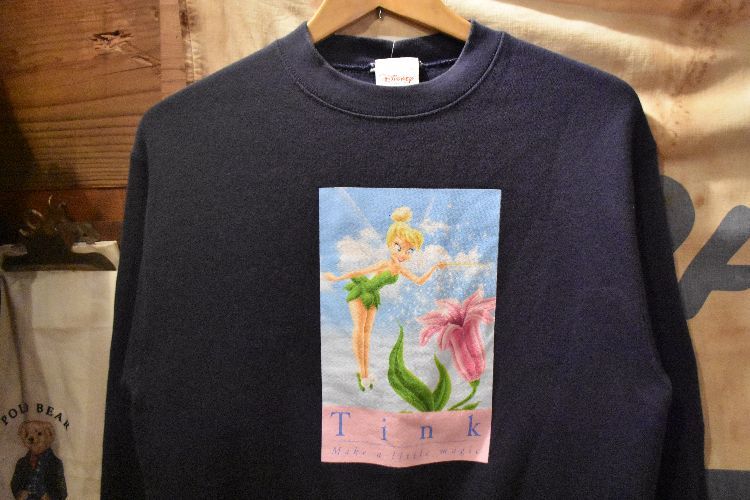 グッドプリント◎USA製ビンテージDISNEY STOREディズニーストアー ティンカーベルプリントスウェットSネイビー紺アメリカ製アメカジn23241