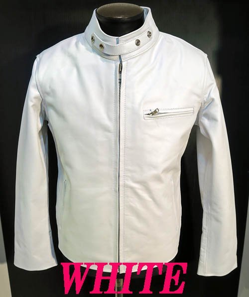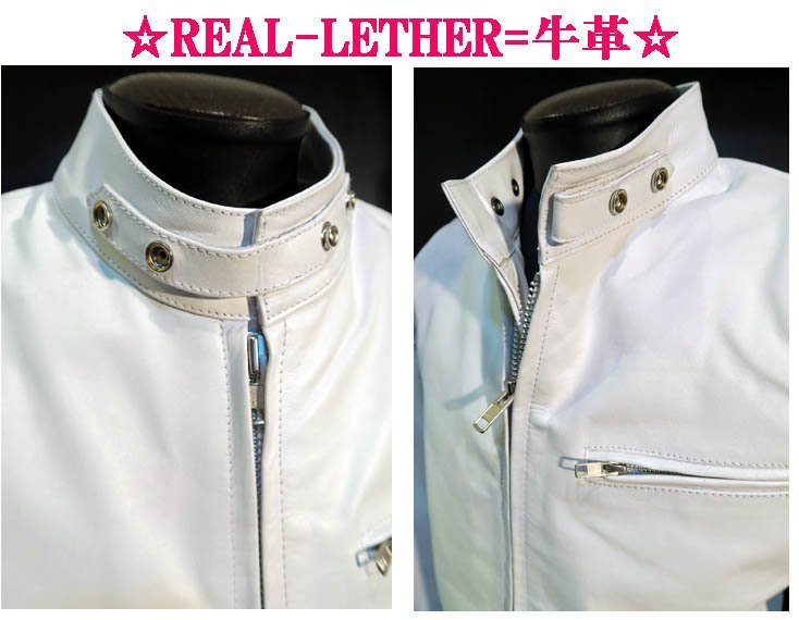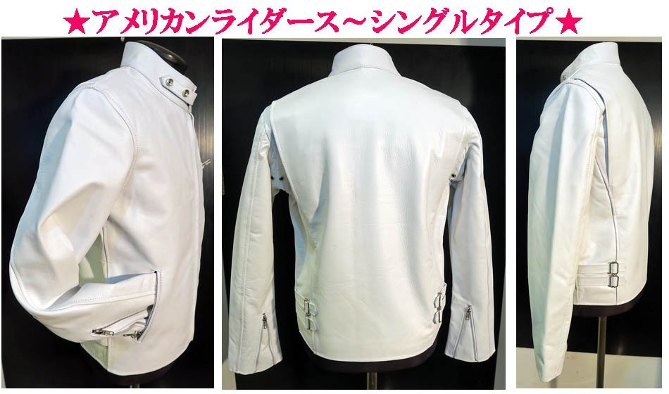 Lサイズ ライダースジャケット シングル 本革 アメリカン 4732 白 ホワイト WHITE 牛革 カウレザー ハーレー インディアン カウボーイ