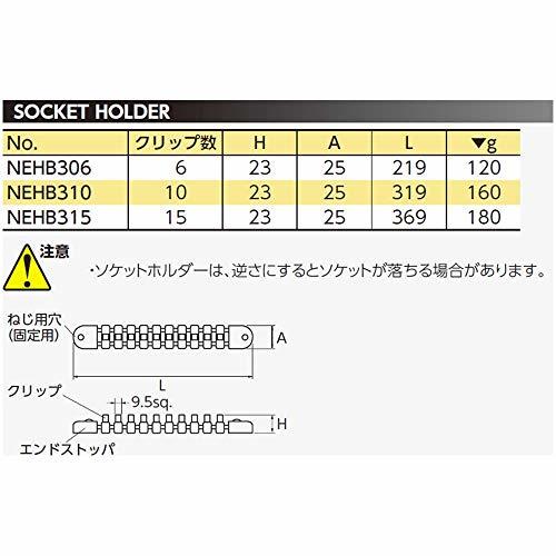 「京都機械工具(KTC) ネプロス ソケットホルダー NEHB310 差込角:9.5mm クリップ数:10個」▼4989433818931▼(商品説明)クリップ数:10・シルバー 25×319×23mm NEHB310・・Style:クリップ数:10・差込角(mm):9.5 差込数:10 全長(mm):319 差込数:10・特殊工具鋼説明 ●ソケットが差し込みやすく、持ち運び時は抜けにくくなっています●補充用クリップで差込個数を追加可能です●ネプロス・ソケット用ホルダー●差込角(mm):9.5●差込数:10●全長(mm):319●特殊工具鋼
