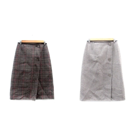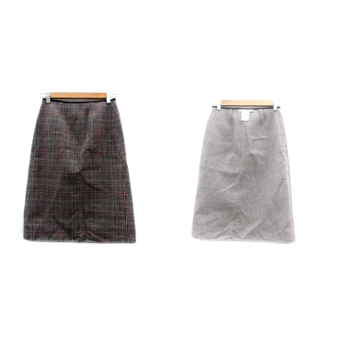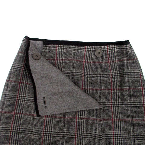 アンタイトル フレアスカート ボタンダウンスカート ミモレ丈 グレンチェック柄 リバーシブル ウール 0 グレー 黒 レディース