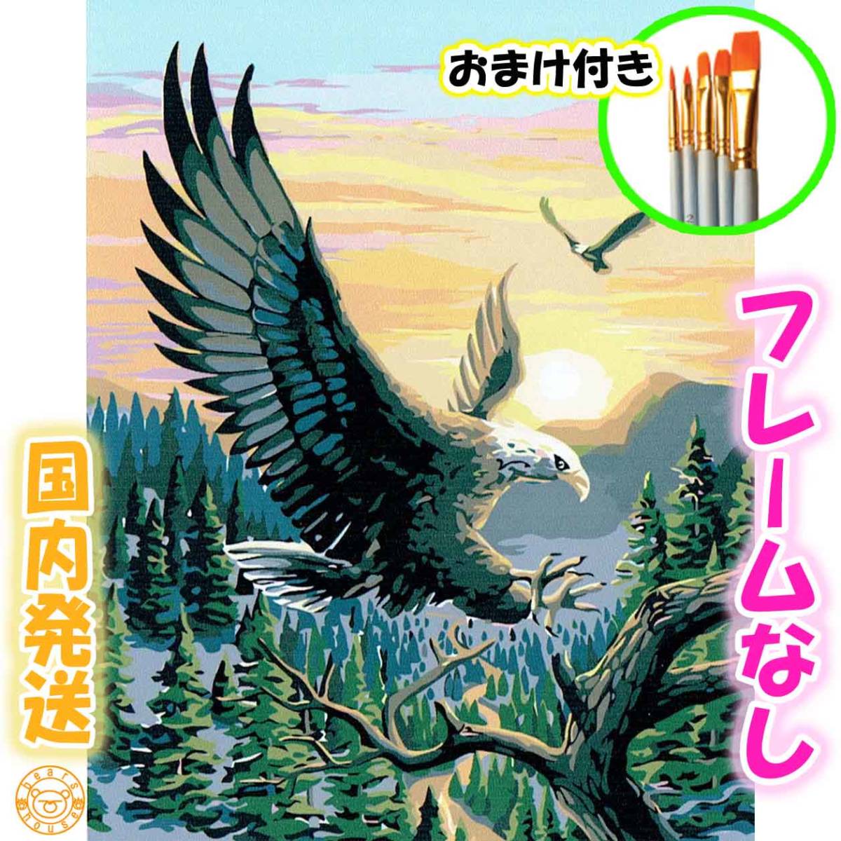 ☆おまけ付き☆ 【フレームなし】 数字塗り絵 セット 絵の具付き 鳥 かっこいい 鷲 インテリア 絵画 ジグソーパズル 油絵風 6169