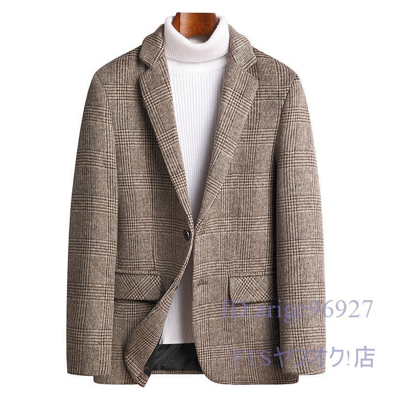 U405☆新品テーラードジャケット チェック柄 メンズ* ウール混ん 秋冬ビジネススーツ フォーマル ブレザー ブルゾン キャメル XL