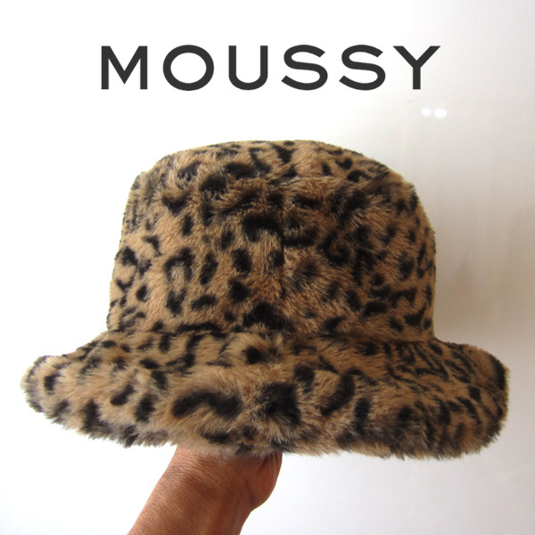 美品 MOUSSY/マウジー★ アンゴラ/ウール ヒョウ柄バケットハット