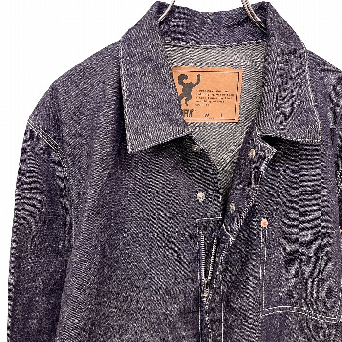 | 商品タイトル | PPFM 若干薄手 デニム カバーオール ジャケット 無地 長袖 ジップアップ フライフロント 綿100% F ネイビー 紺 レディース(メンズ?) |
