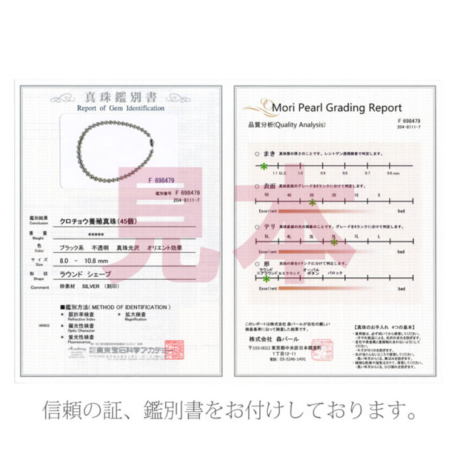 森パールオリジナル基準の鑑別書をお付けいたします。