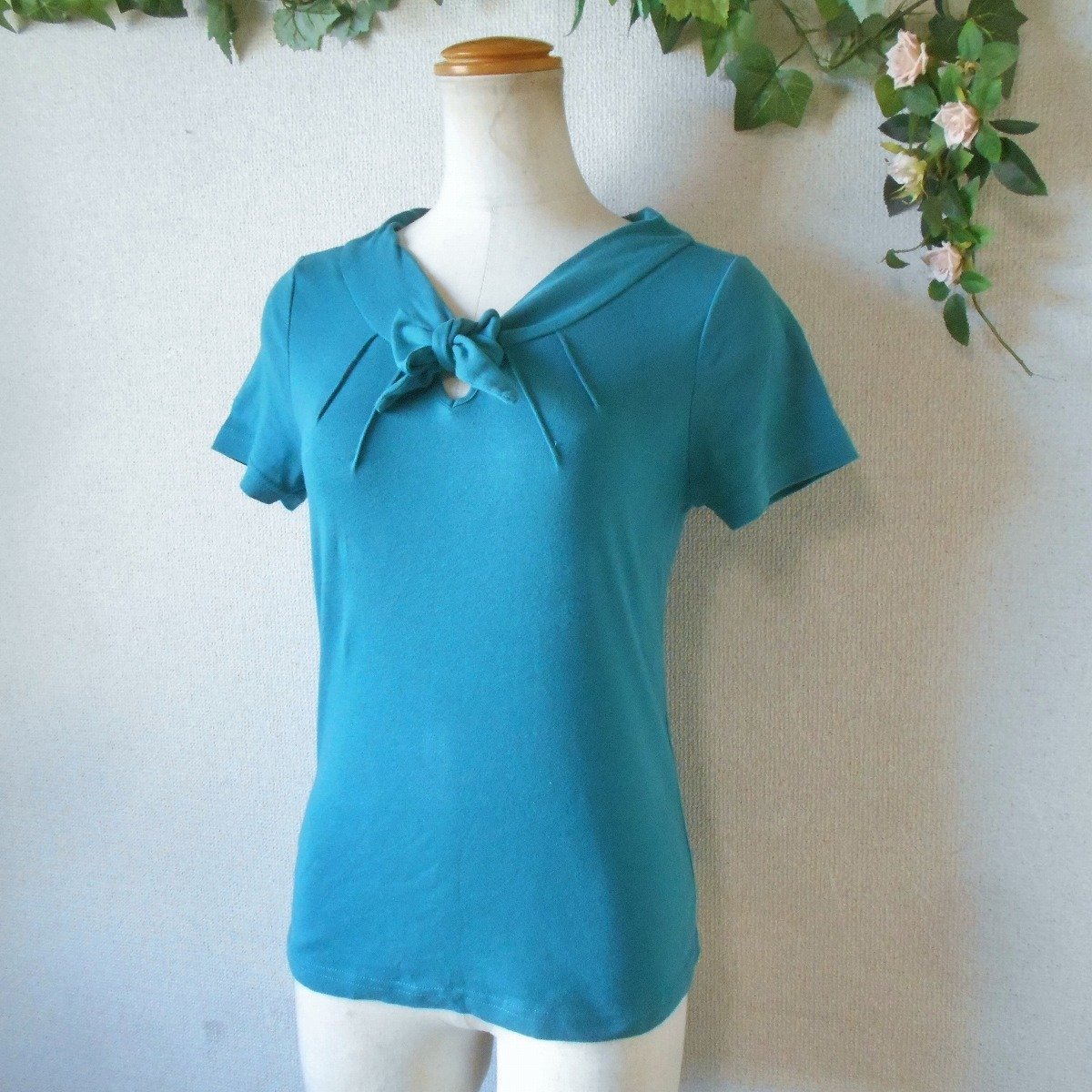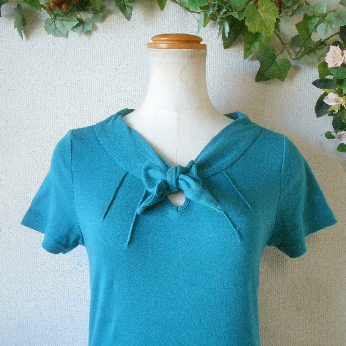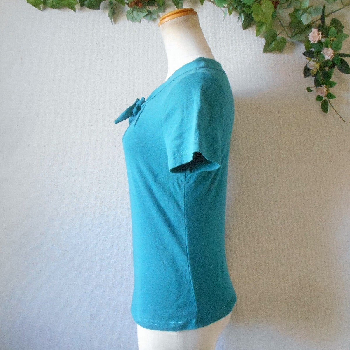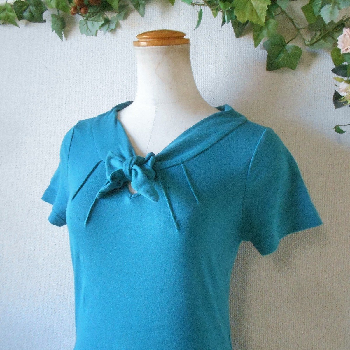 【ポイント】ホコモモラのレディース用カットソーになります。お色はターコイズブルーで半袖の夏を中心に着ていただけるお品です。