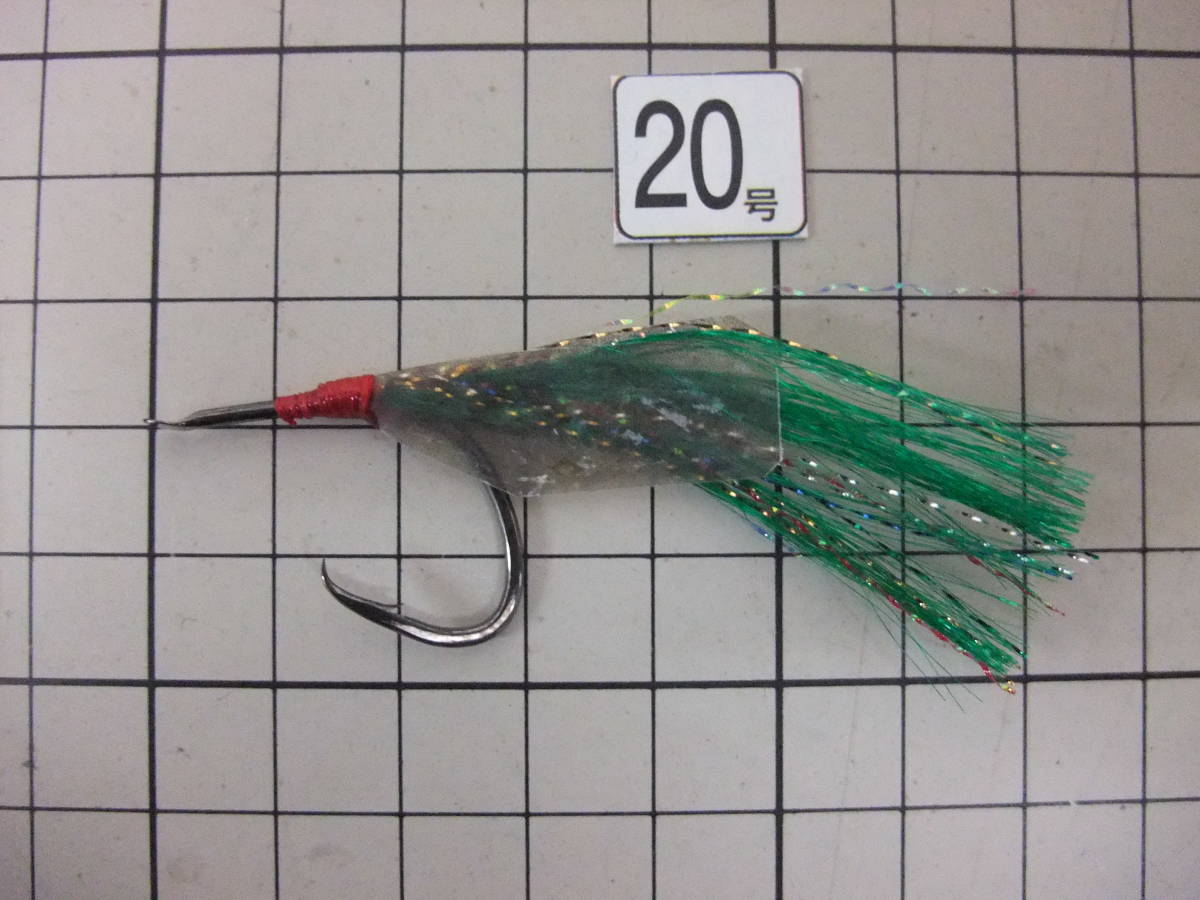 20MN ムツ20号毛針 緑フラッシャー ナマズ皮付き 10本セット