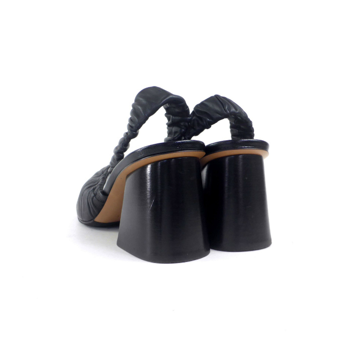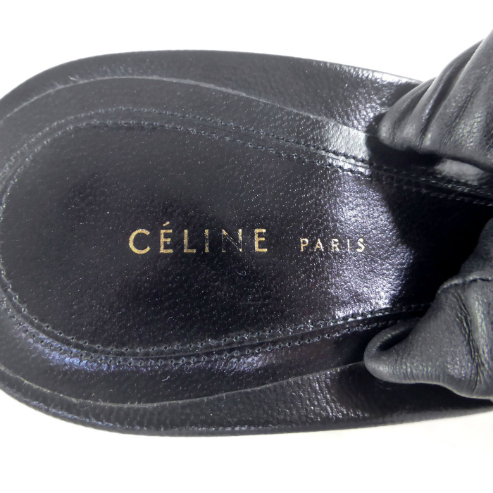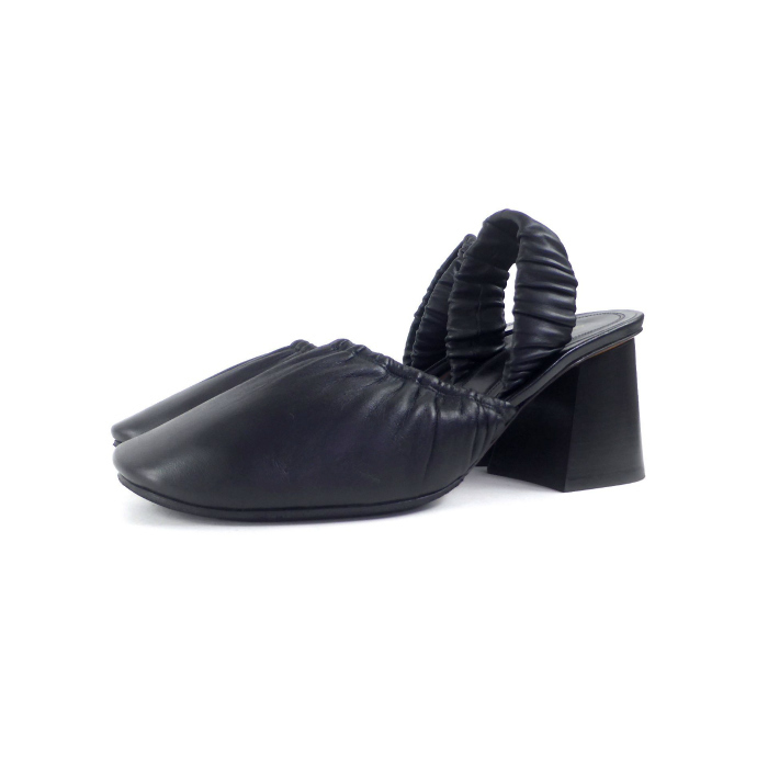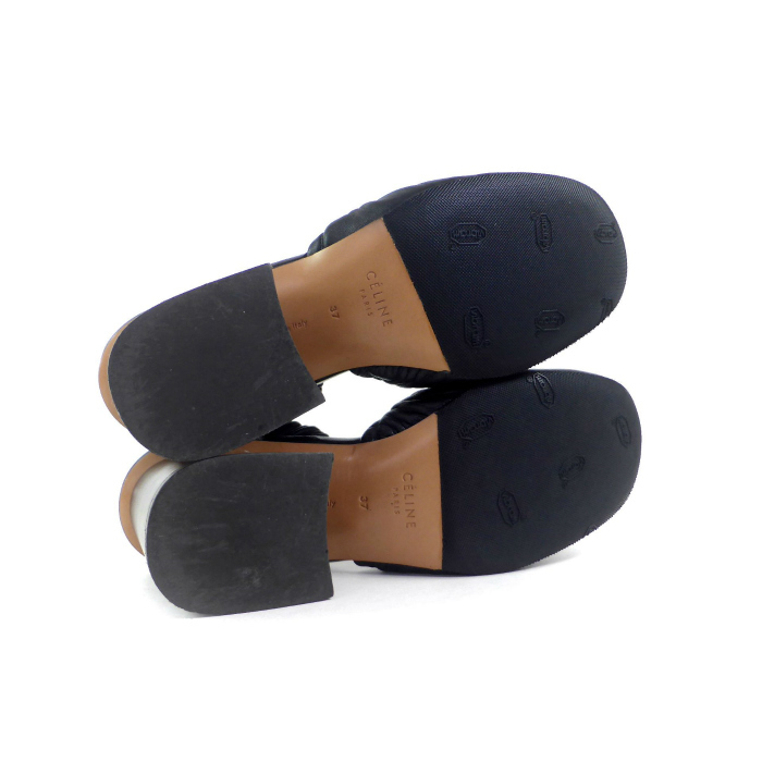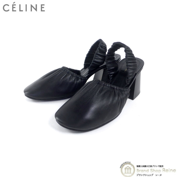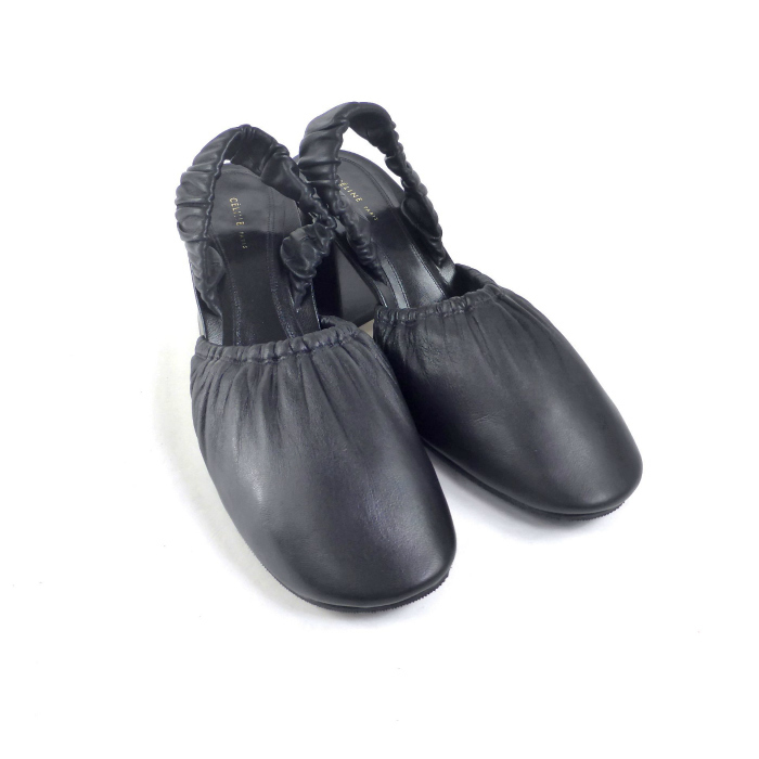 | セリーヌ(CELINE) ソフトバレリーナ スリングバック パンプス ラムスキン バレエ チャンキーヒール 旧ロゴ #37 ブラック(中古) |