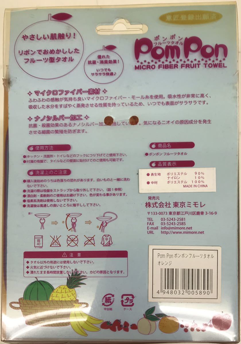 商品名 : ポンポンフルーツタオル オレンジ Pom Pon MICRO FIBER FRUIT TOWEL マイクロファイバータオル