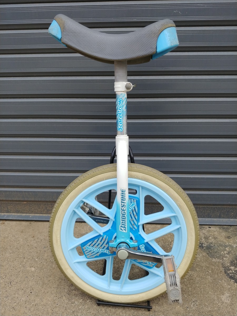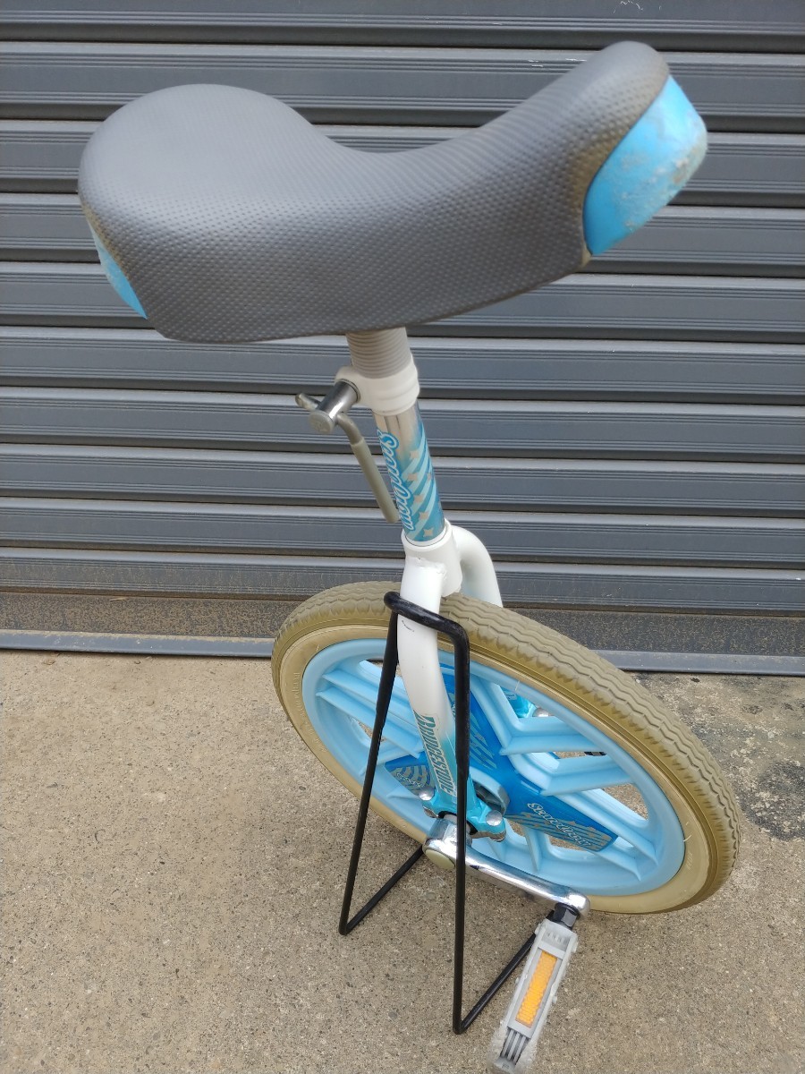 ブリヂストン製16インチの一輪車の中古品です。サドルとペダルに目立つ傷がございますがタイヤにヒビ割れはございませんのでまだまだお使いいただけます。付属スタンド付きです。長野市内引き渡し限定になりますのでご注意下さい。