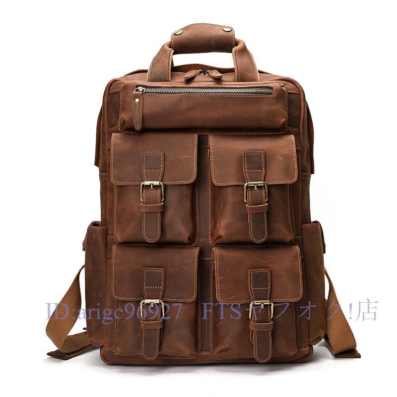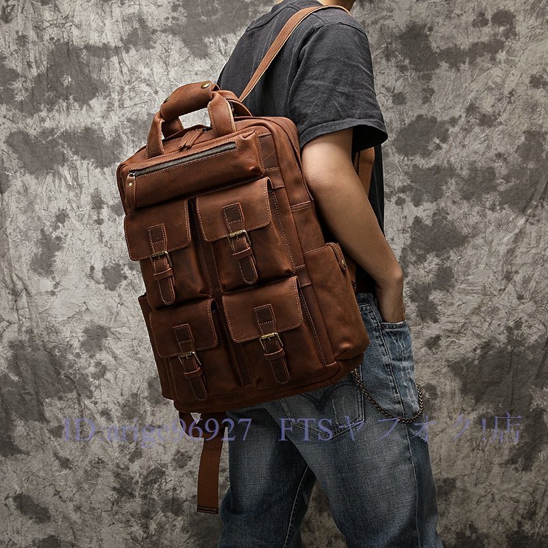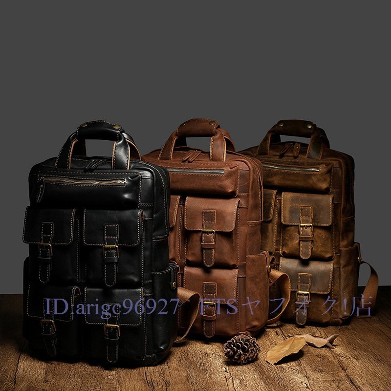 A5755☆新品 大容量リュックサック メンズリュック牛革 ビジネスリュック トートバッグ PC対応 本革 A4書類 通学通勤 鞄 出張 多機能