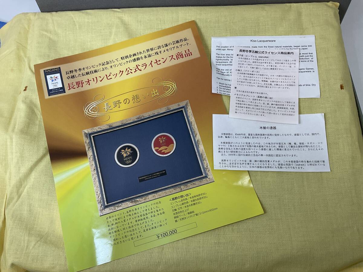 長野オリンピック公式ライセンス 長野の想い出 メモリアルプレート 木曽の漆器 芸術品 箱入 希少品 1998【5169】