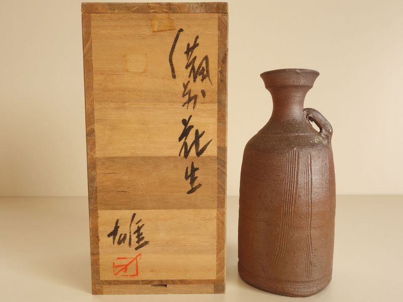 備前焼  人間国宝 藤原 雄  花生  共箱  本物保証