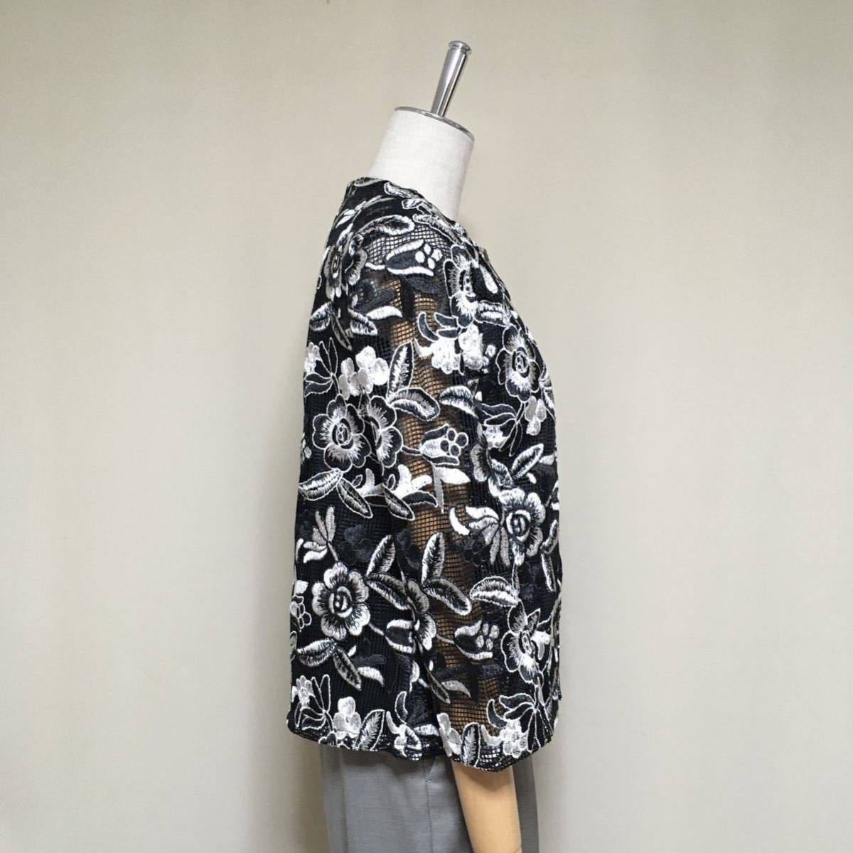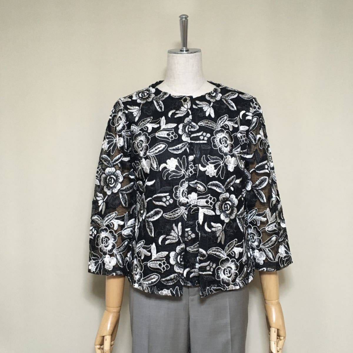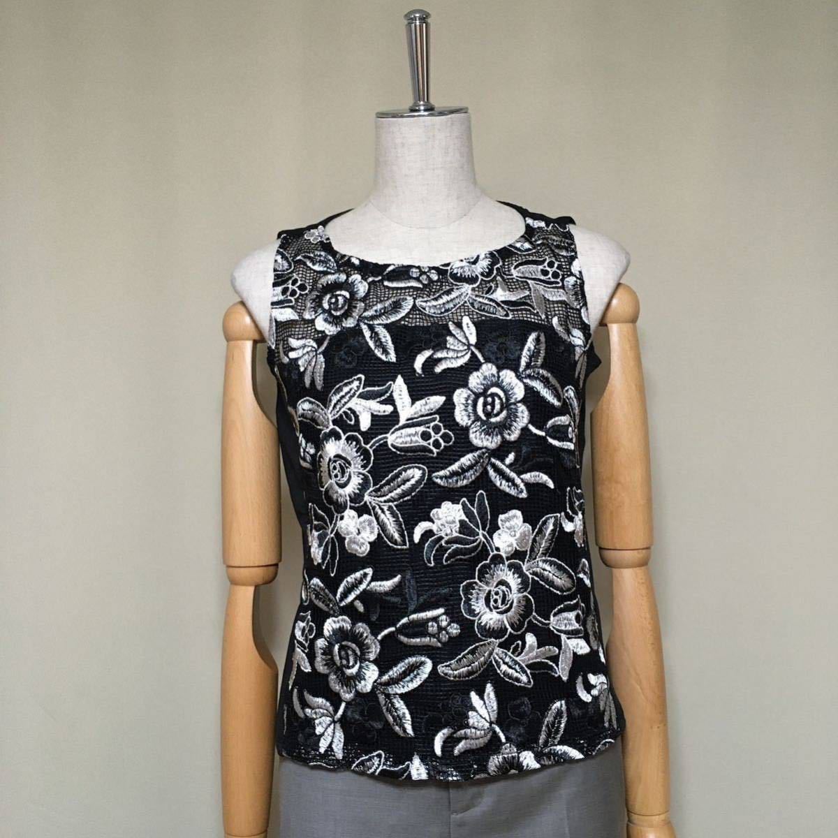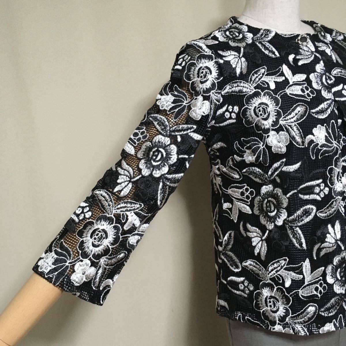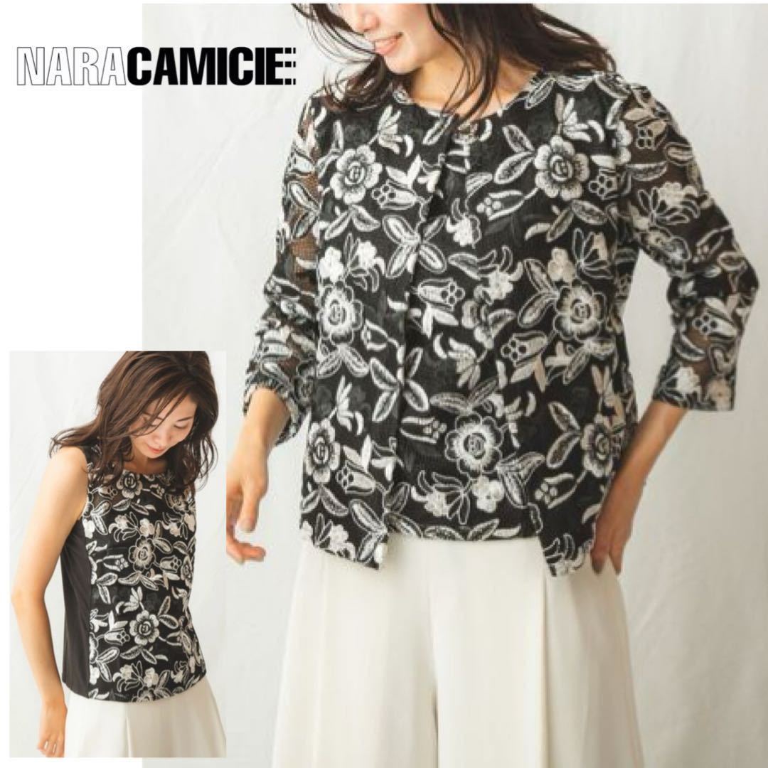美品★ナラカミーチェ イタリア製 定価5.4万 洗える イタリアンレースノーカラージャケット&ノースリーブブラウス サイズ0/S アンサンブル