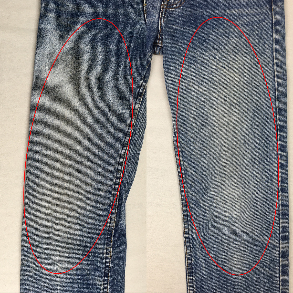 お尻と両太ももから膝にかけて若干茶色くくすんでいます。