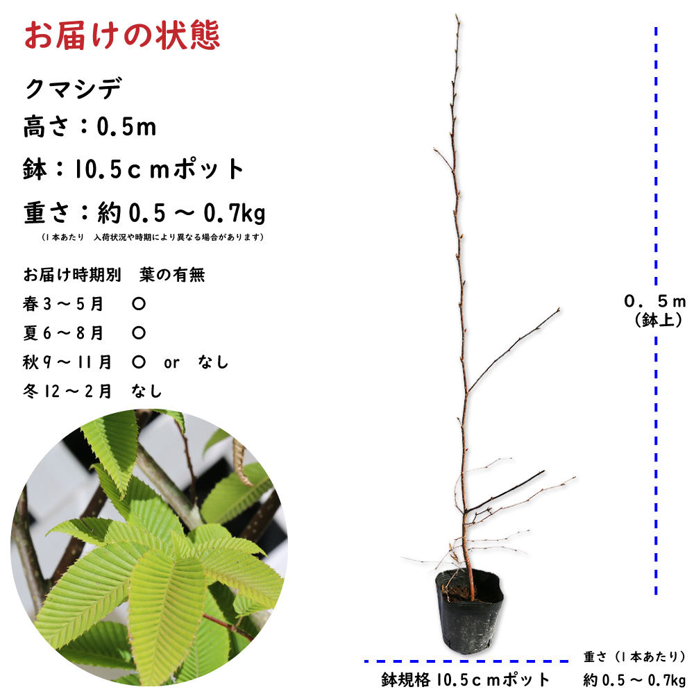 クマシデは落葉高木です。日本全土に自生しています。高さは15mほどになります。春に花穂が垂れるように咲きます。木材は固く建材などに利用されます。