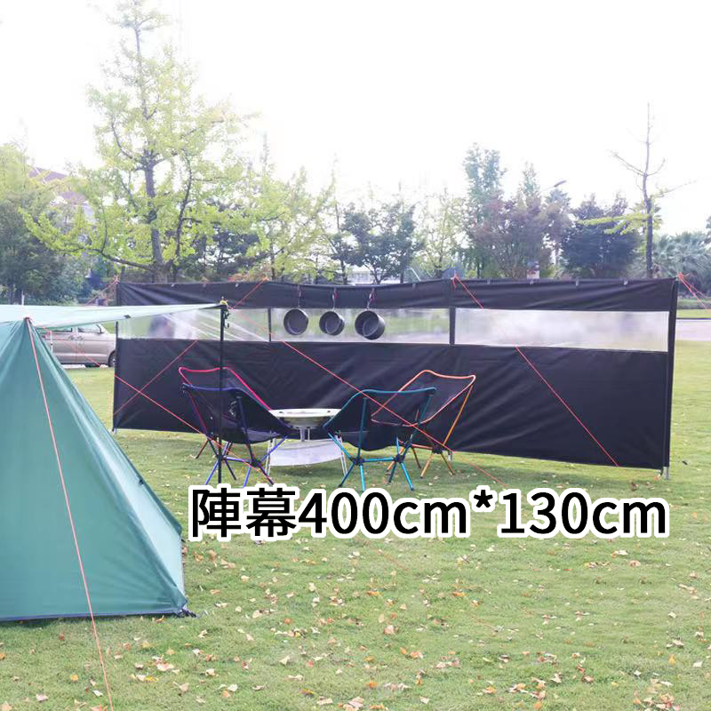 陣幕 防風 焚火陣幕 横幕 ウィンドスクリーン 3面 分割式ポール付き 風よけ 目隠し ワイド 軽量 コンパクト 撥水 収納ケース付 ブラック